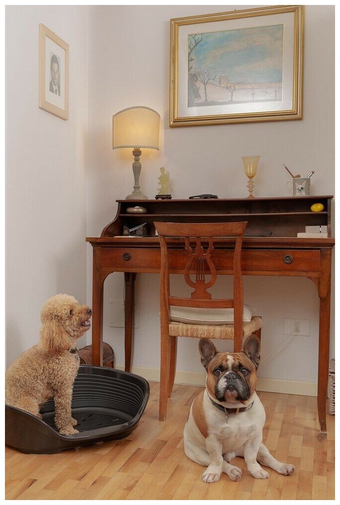 | Плюсы: | Отлично подошел таксе (у нас, правда, некрупная) . Она в нём и клубочком может свернуться, и во весь свой сосисочный рост вытянуться . Отлично вписался в интерьер, пластик качественный. По полу не скользит, большое покрывало, которое постелено собаке в качестве подстилки, не выпадает. Коты тоже оценили. |