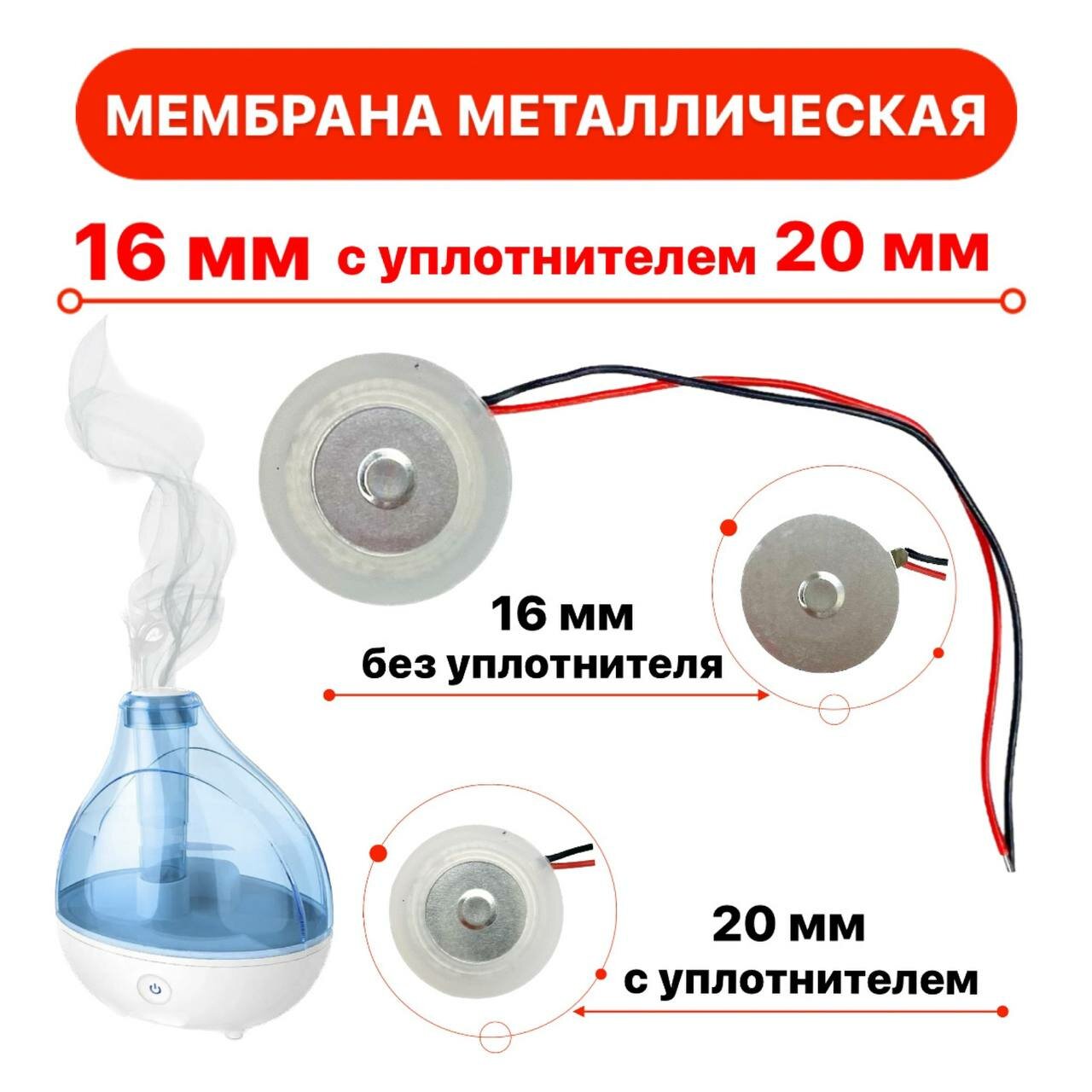 Мембрана металлическая 16мм для увлажнителя воздуха, с уплотнительным кольцом 20мм. интересное: