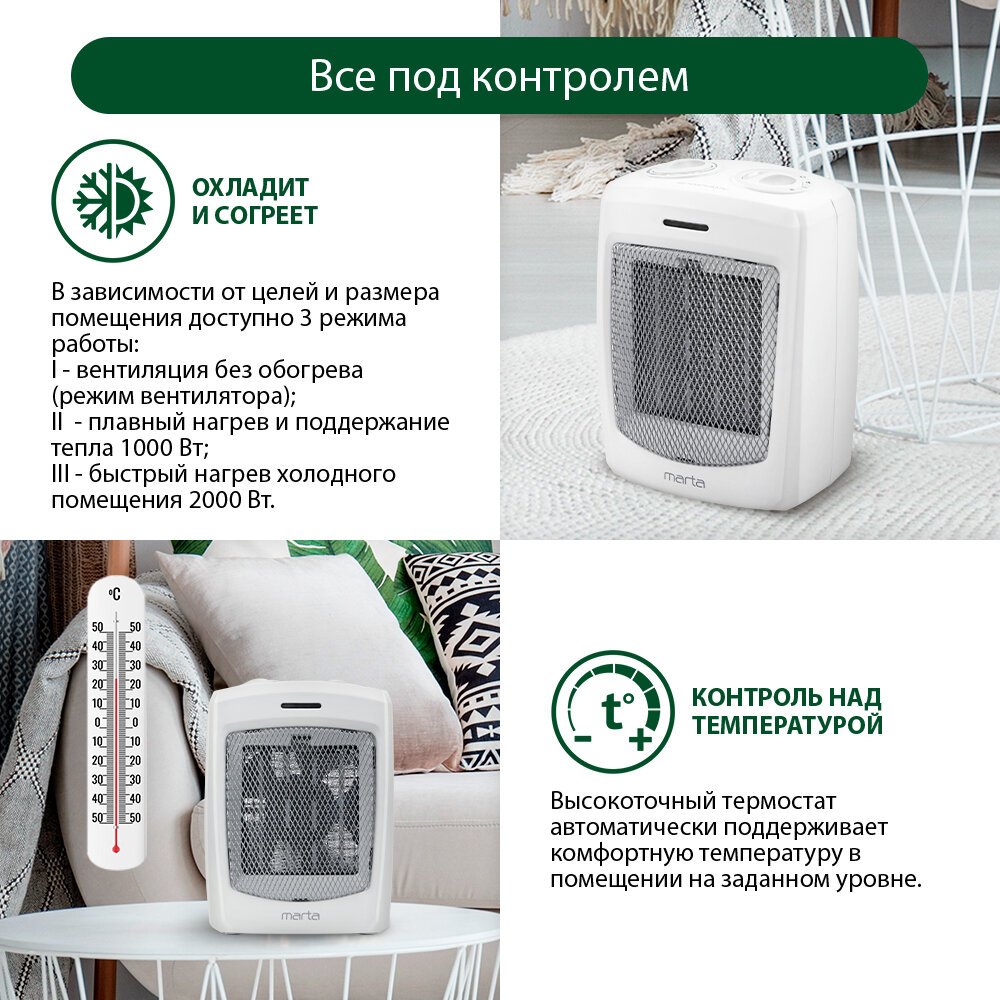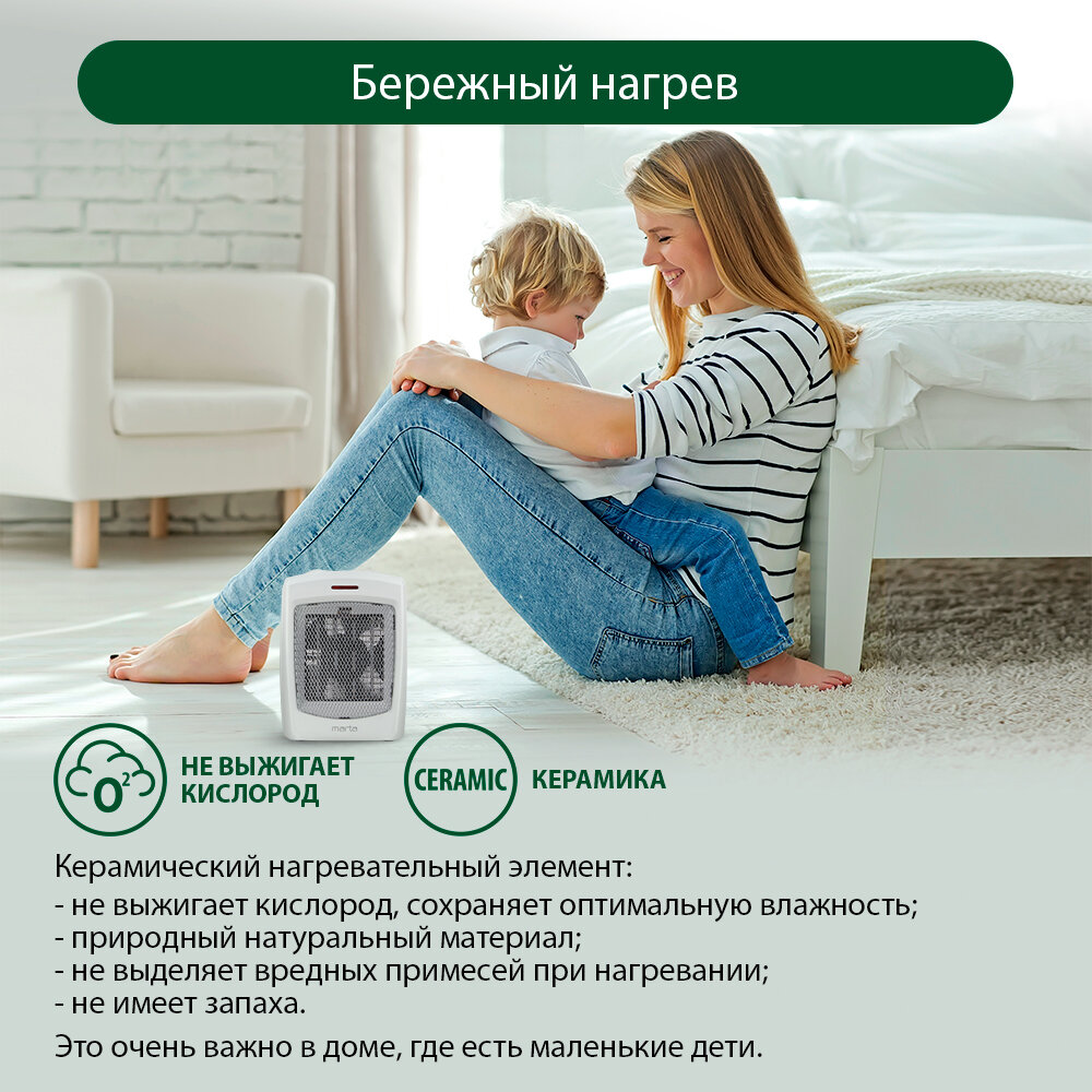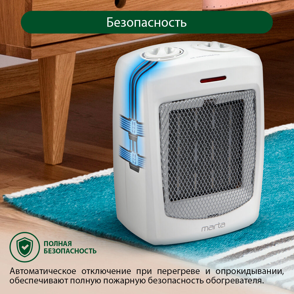 Тепловентилятор MARTA MT-2522 белый жемчуг интересное: