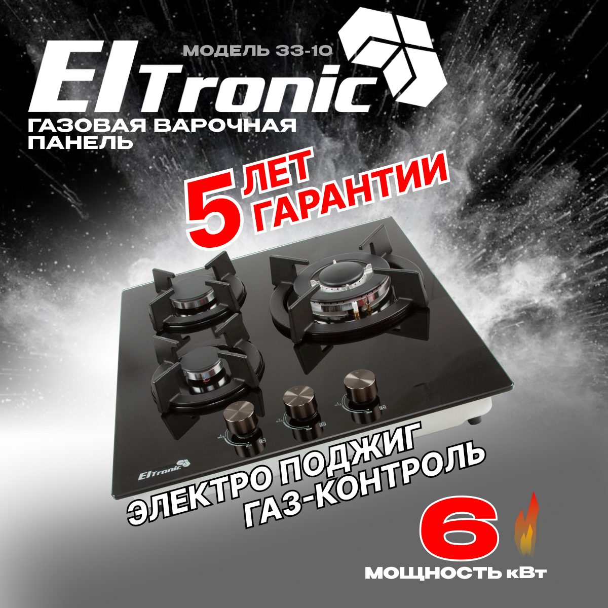 Купить Газовая варочная панель ELTRONIC 33-10 с 3-мя конфорками, черная