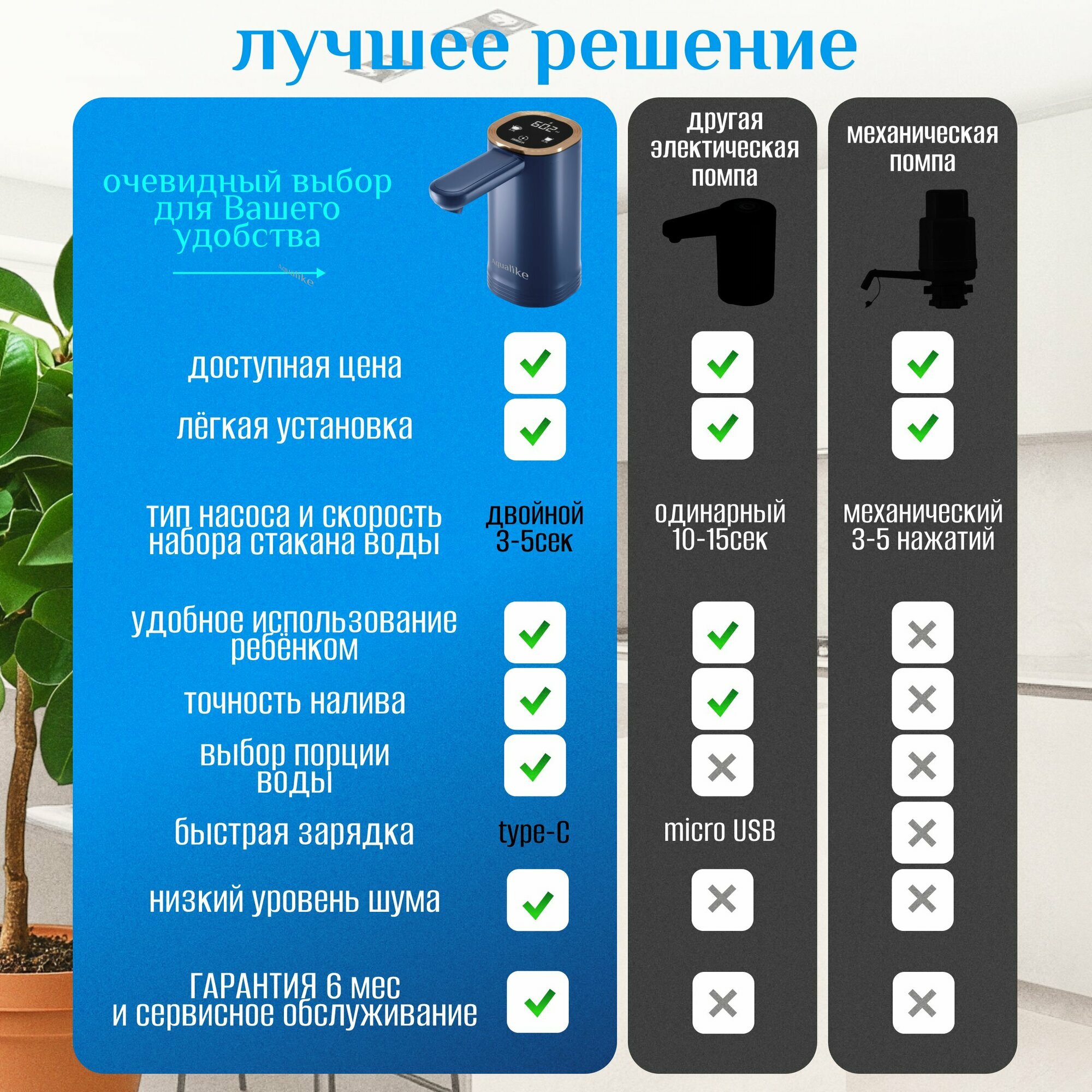 СохранитьПомпа электрическая для воды сенсорная на бутыль 19л с двойным насосом синяя Aqualike интересное: