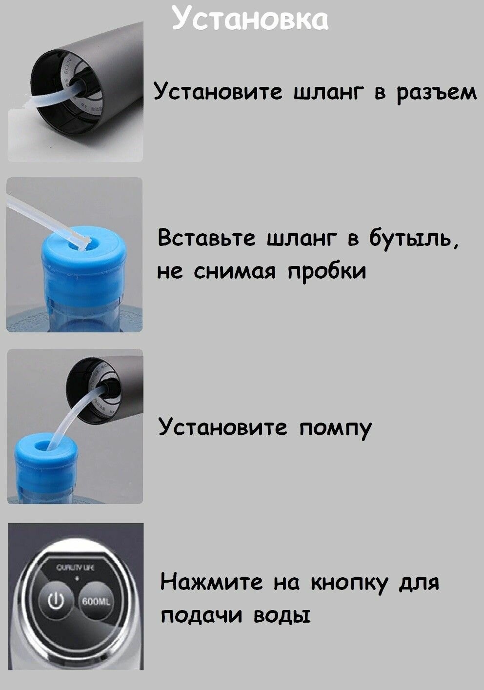 Электрическая помпа для воды , установка на бутылку, белая BM