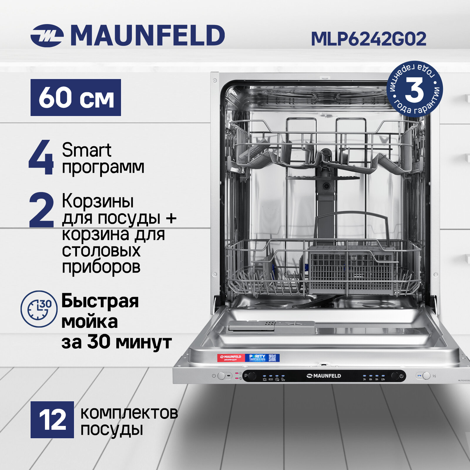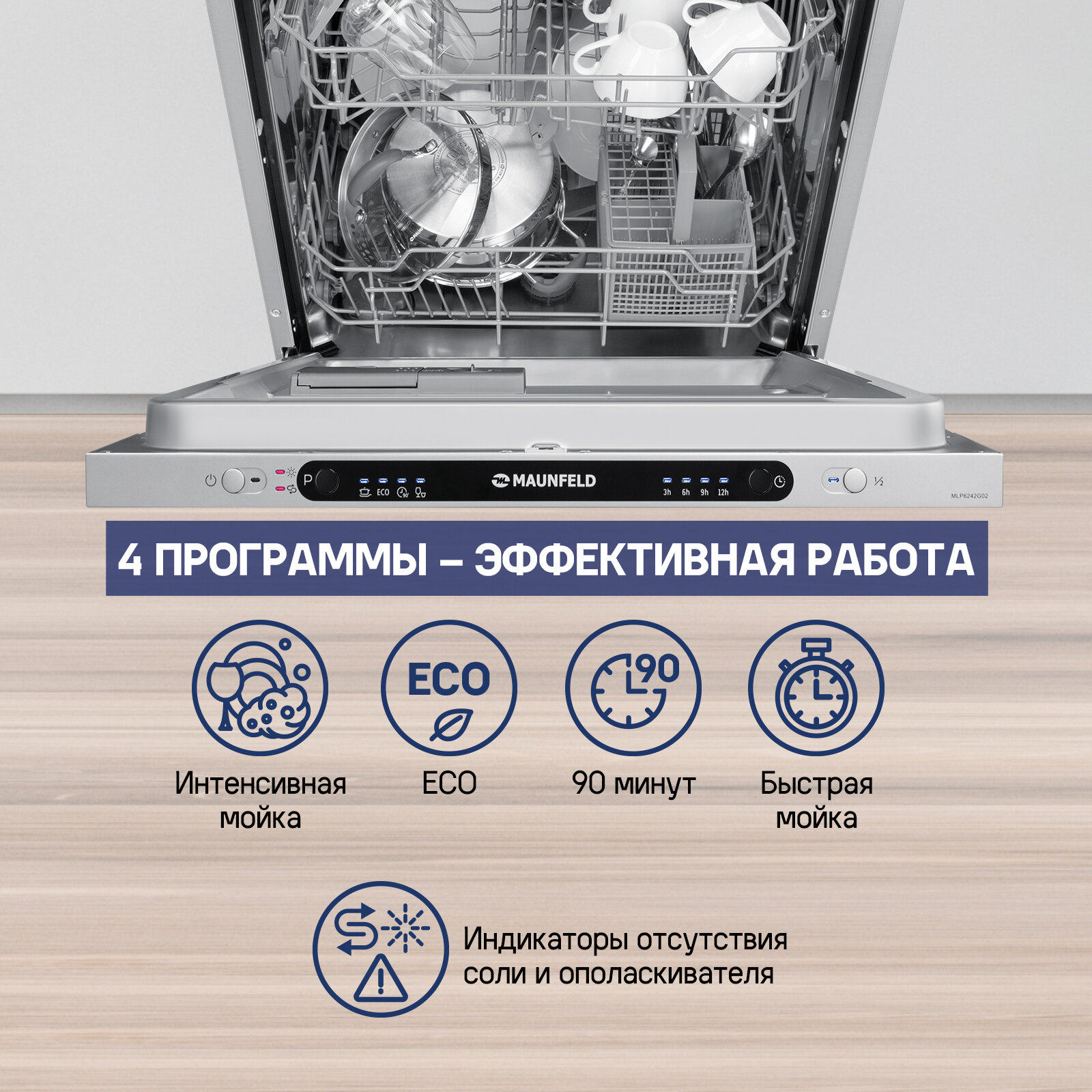 Встраиваемая посудомоечная машина MAUNFELD MLP-6242G02 интересное: