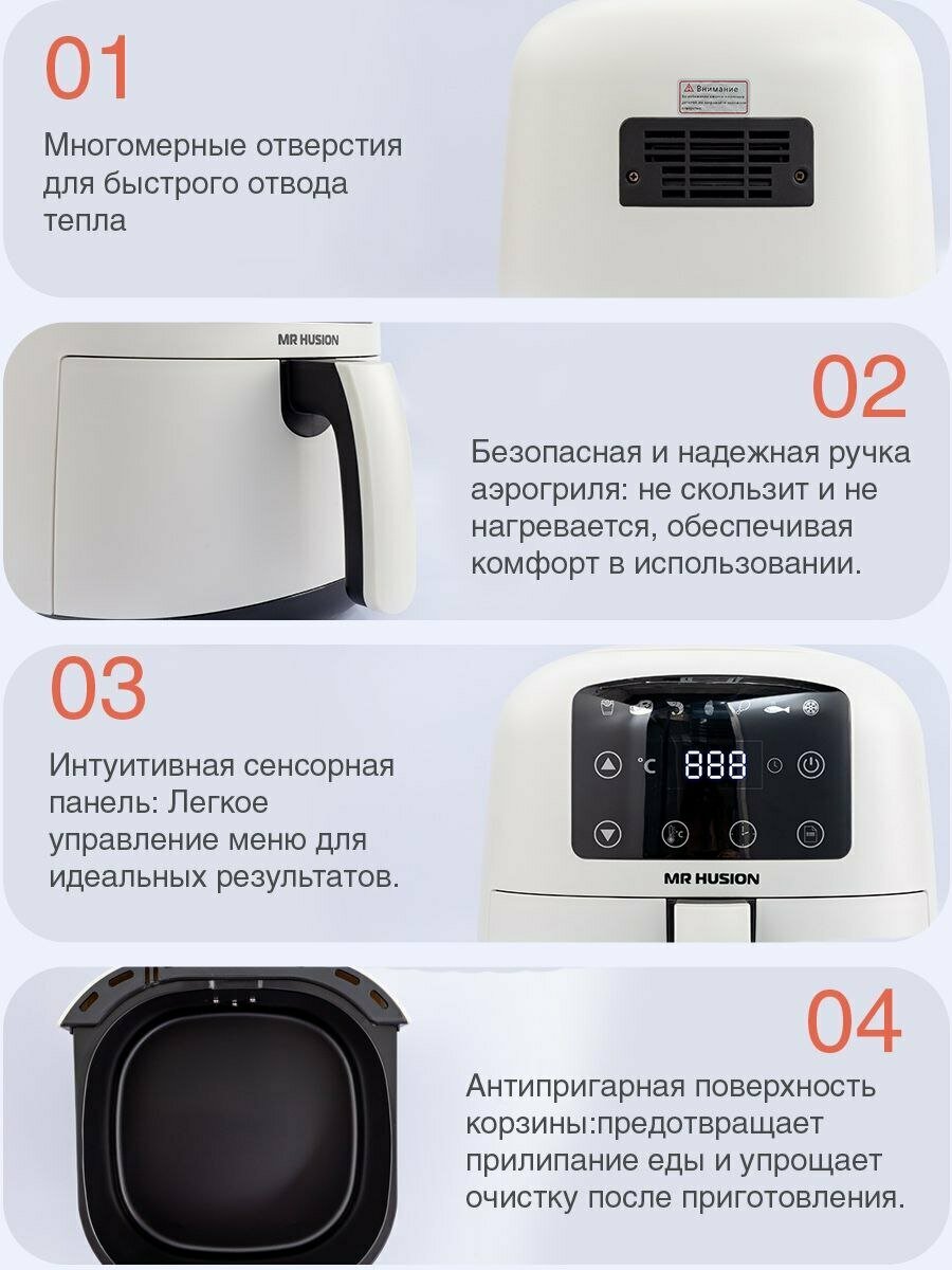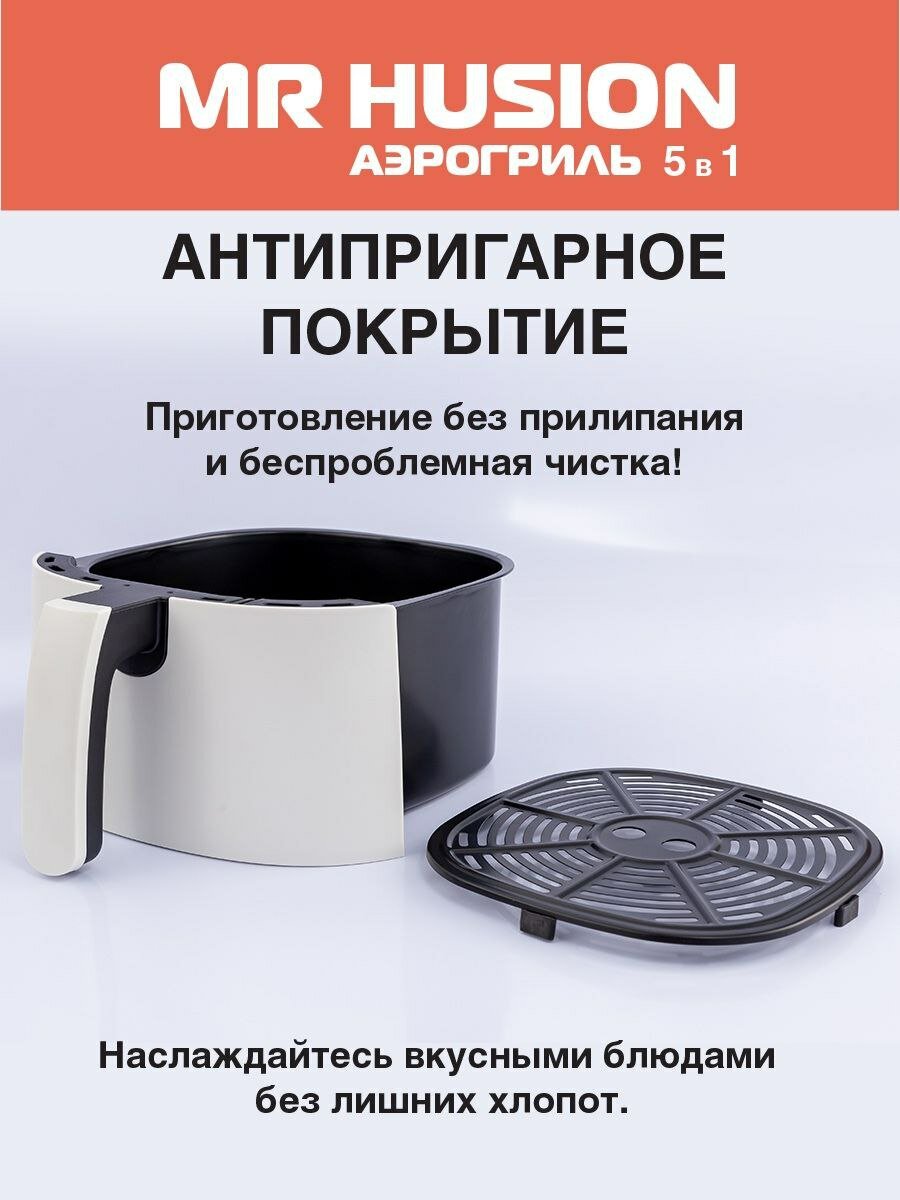 Аэрогриль MR HUSION, 6 л, с дисплеем, 7 автоматическими программами, таймером и установкой температуры, белый интересное: