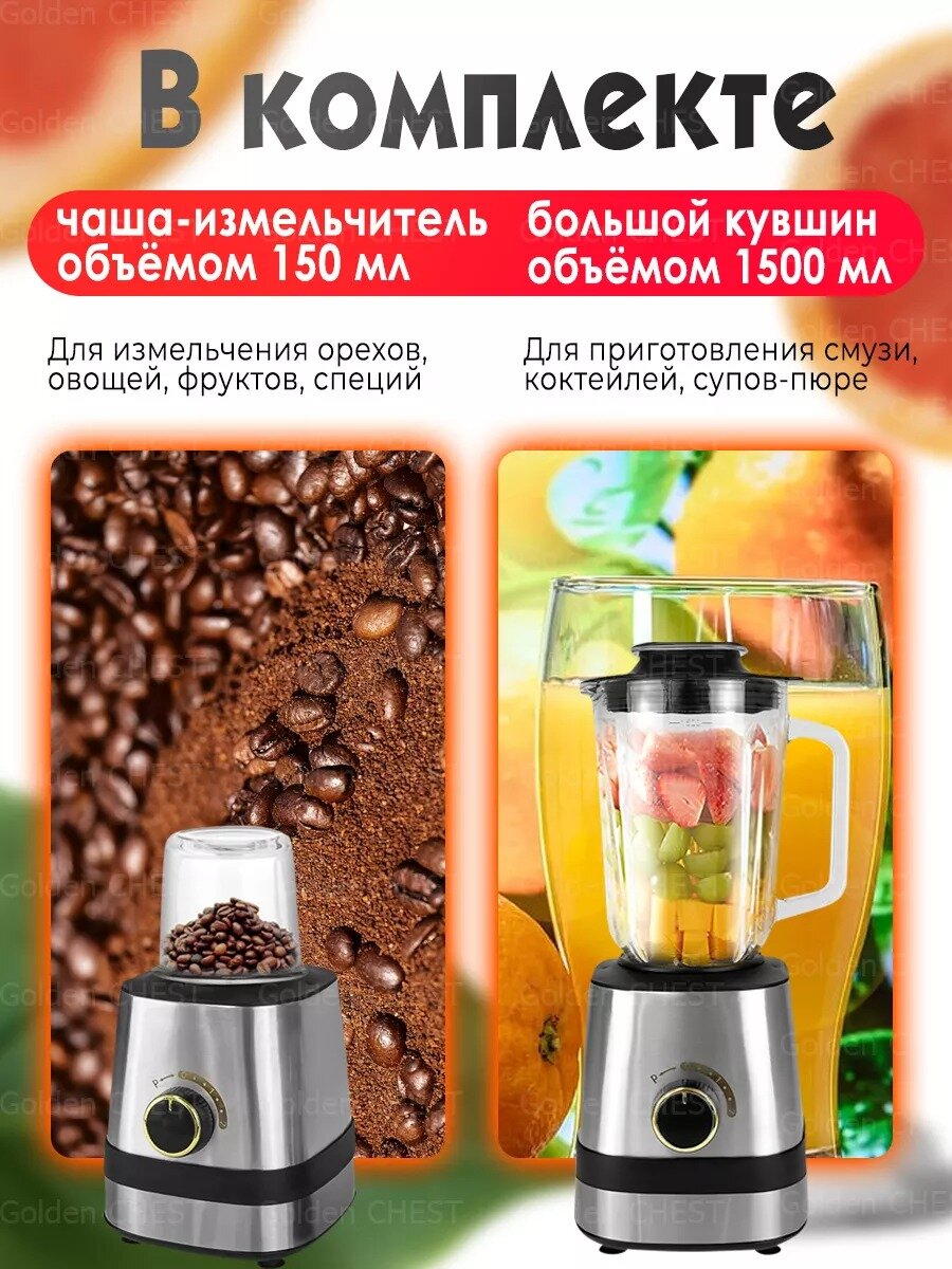 Блендер домашний/стационарный/измельчитель льда/для смузи/кофемолка/1000 Вт, кувшин 1.5 литра, импульсный режим,3 скорости работы,серый интересное: