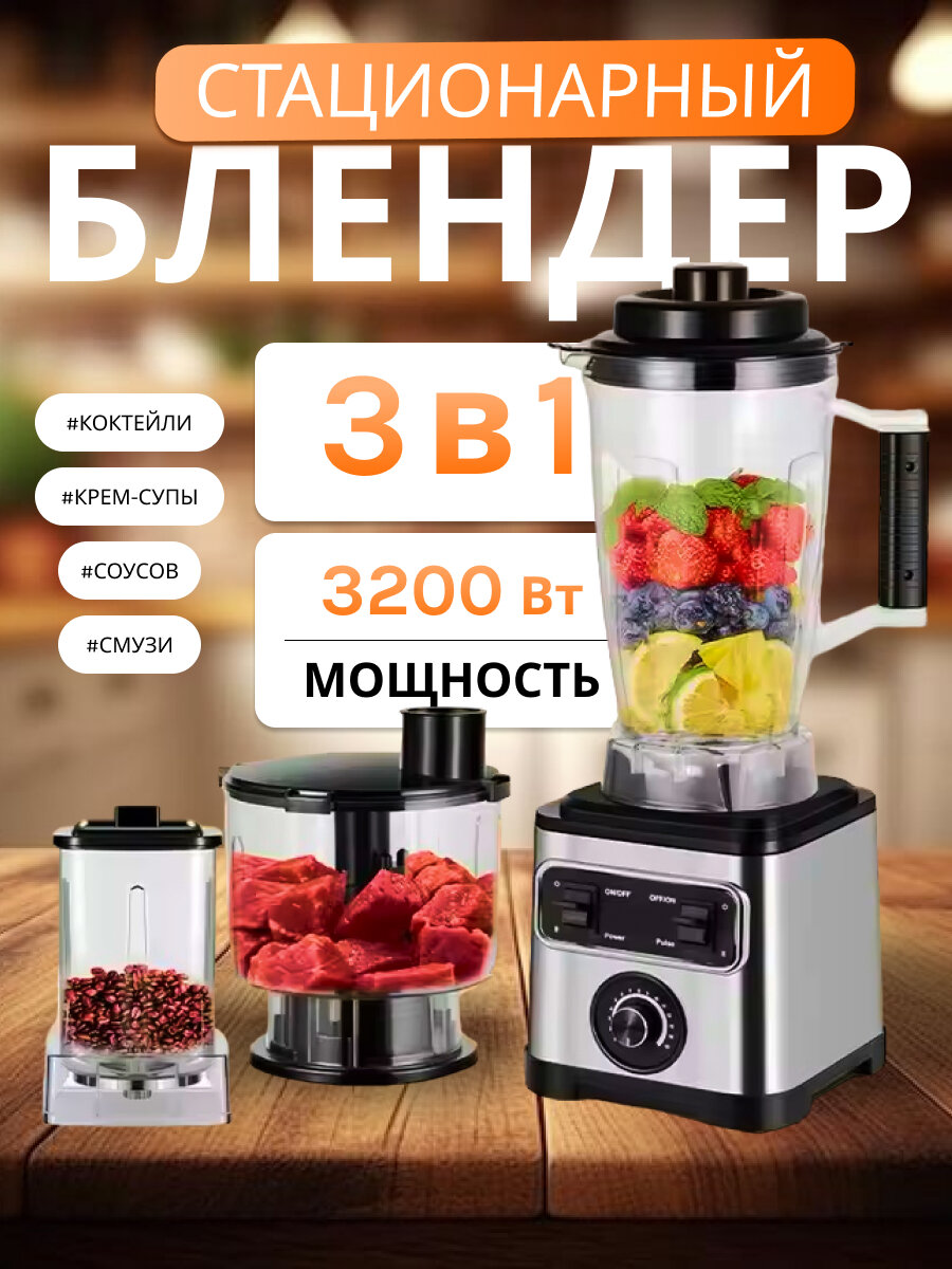 Погружной блендер 3 в 1/измельчитель/миксер/домашний, кулинарный, блендер для смузи, коктейлей, мерный стакан 3л,3200Вт, серебристый интересное: