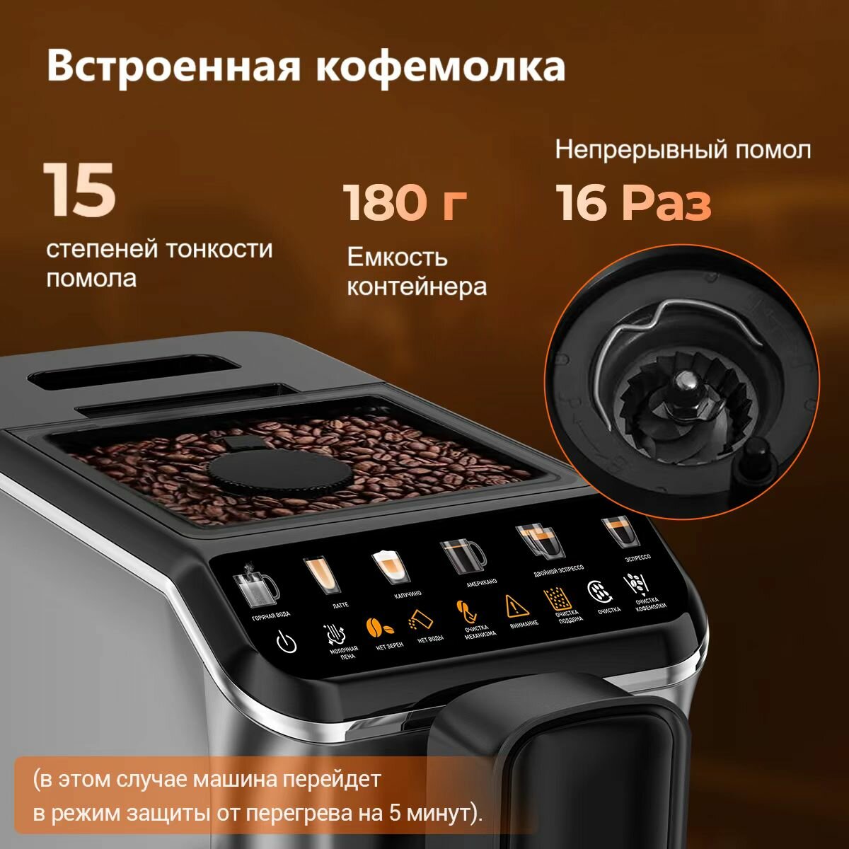 | Количество степеней помола | 15 |