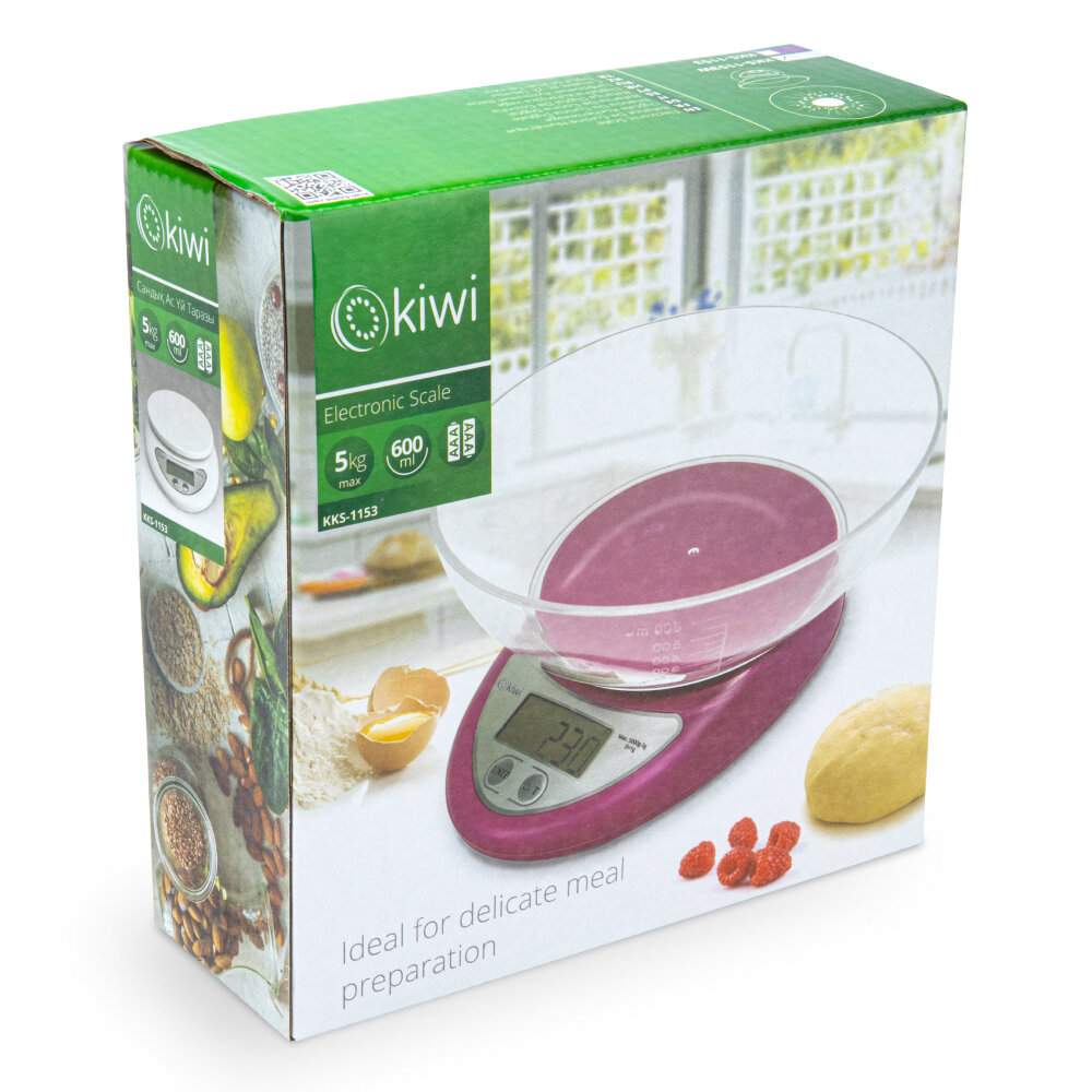 Купить Кухонные весы с чашей 600 мл KIWI KKS-1153, электронные от 2г до 5 кг, точность 1гр.
