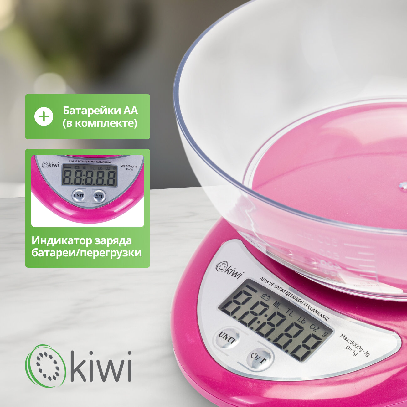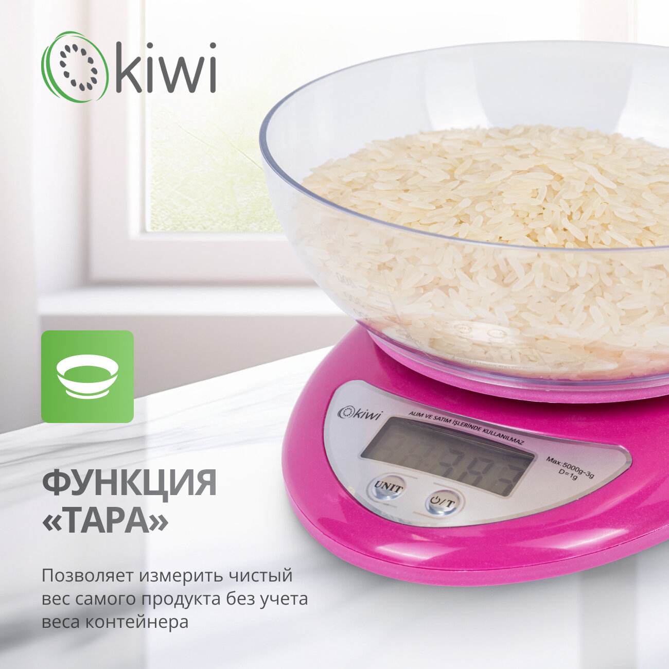 Кухонные весы с чашей 600 мл KIWI KKS-1153, электронные от 2г до 5 кг, точность 1гр. интересное:
