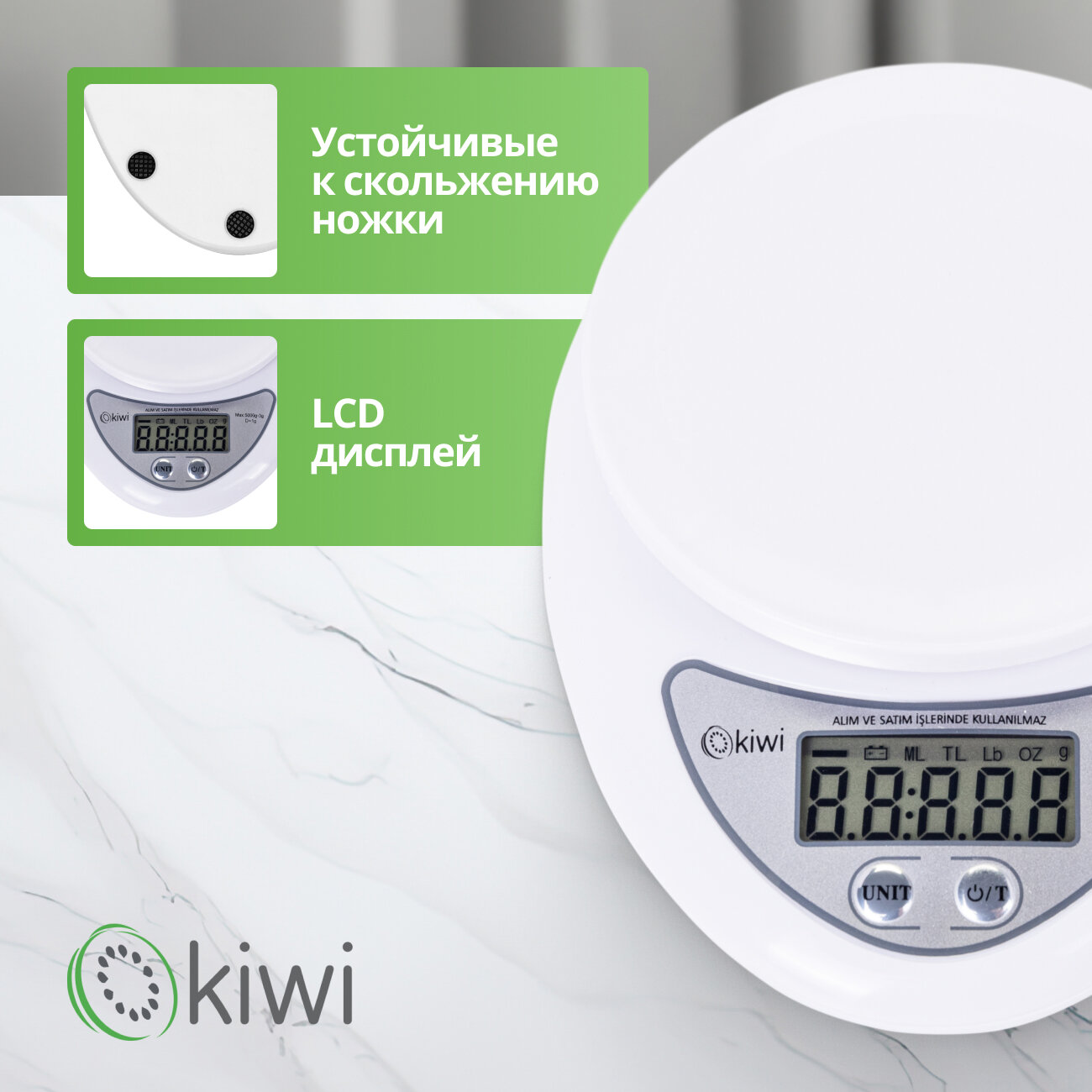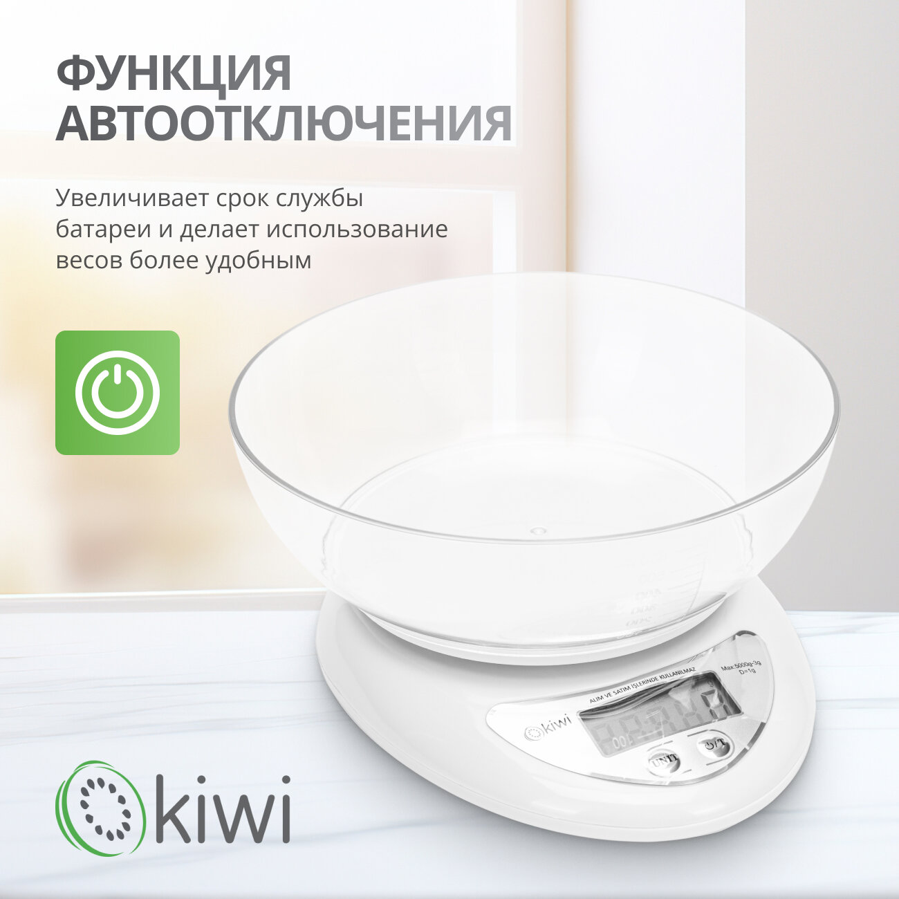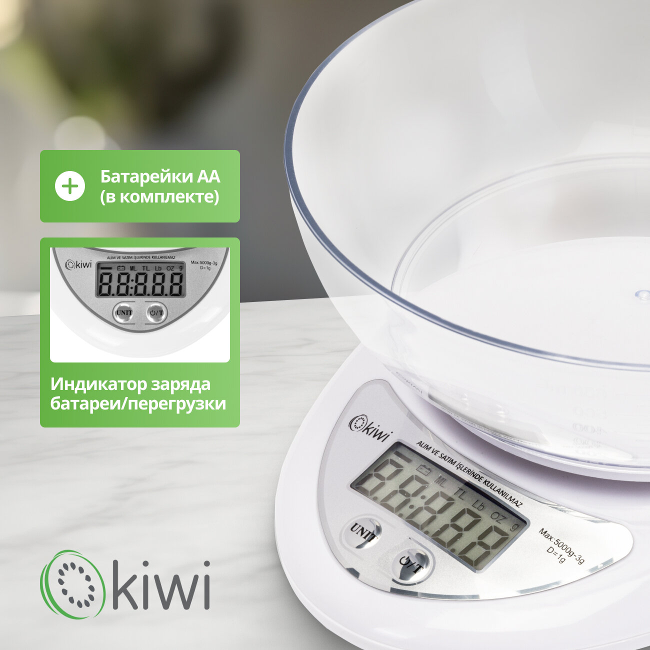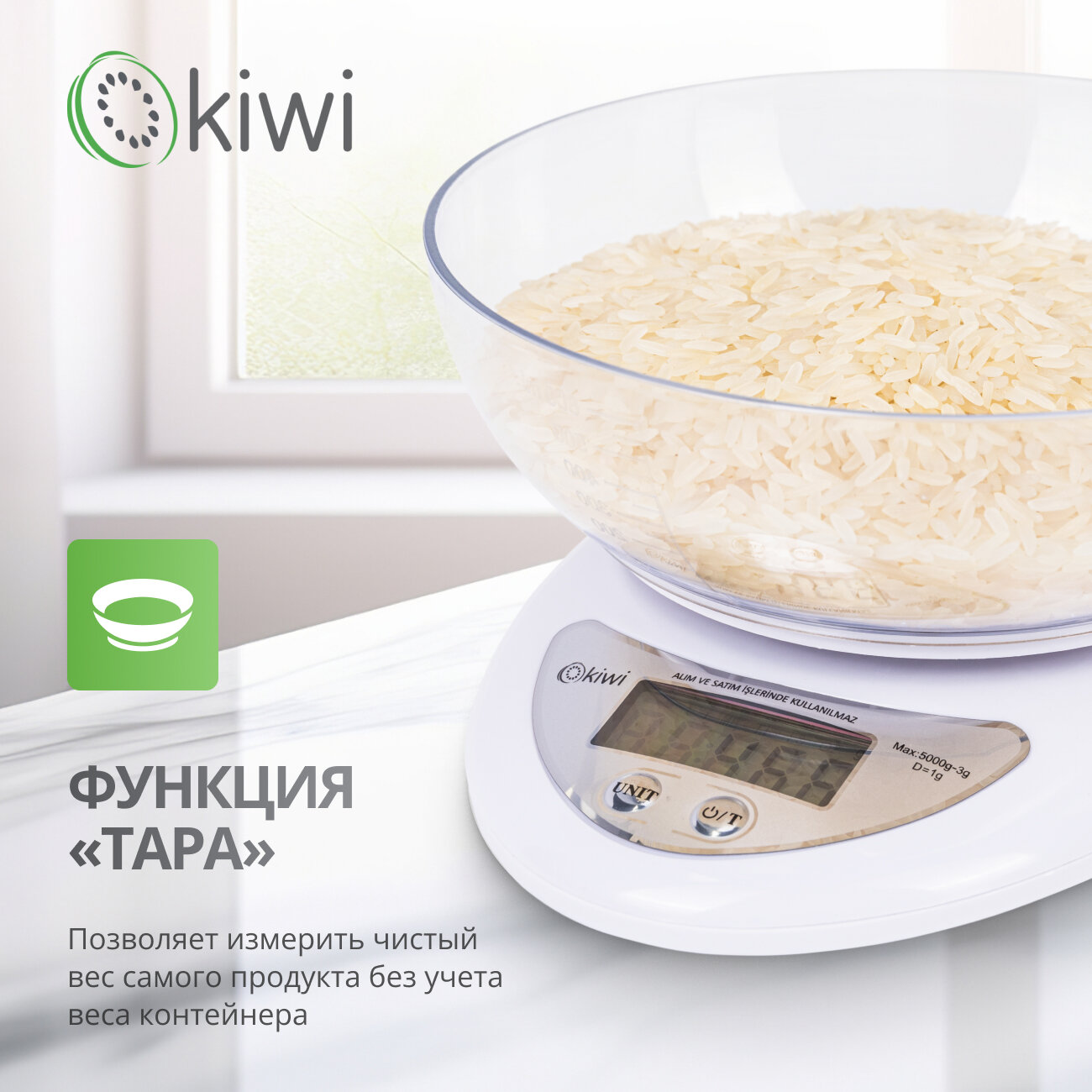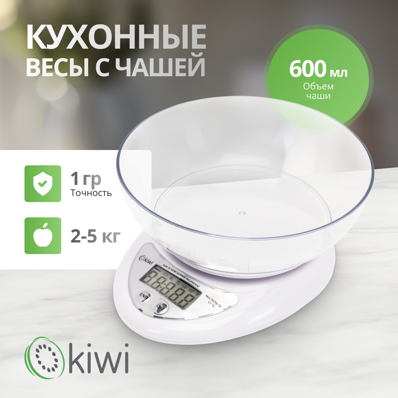 Кухонные весы с чашей 600 мл KIWI KKS-1153W, электронные от 2г до 5 кг, точность 1гр. интересное: