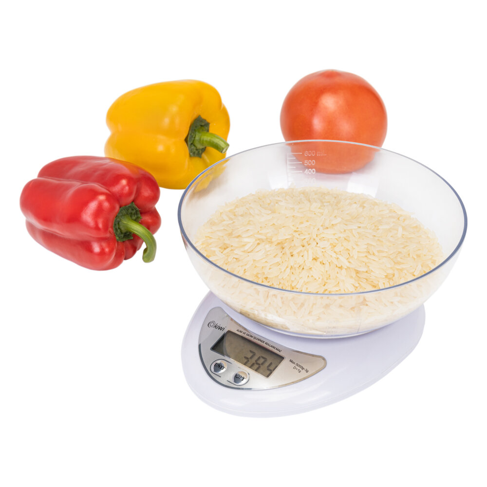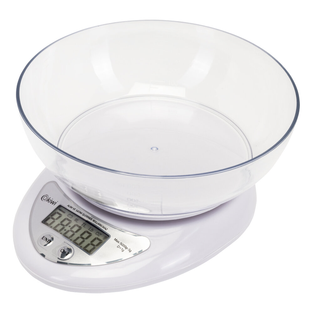 Купить Кухонные весы с чашей 600 мл KIWI KKS-1153W, электронные от 2г до 5 кг, точность 1гр.