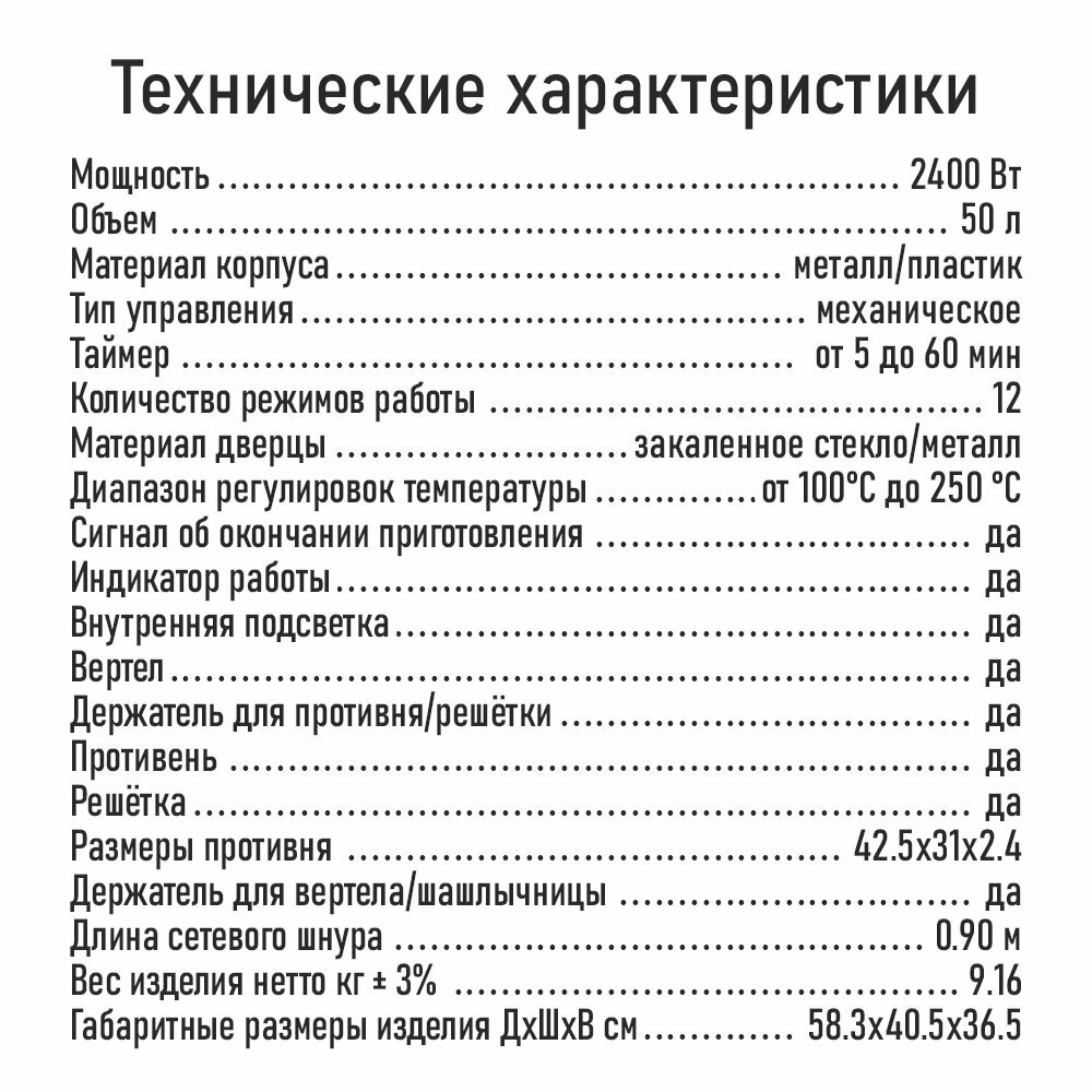 | В комплекте | вертел, противень, решётка |