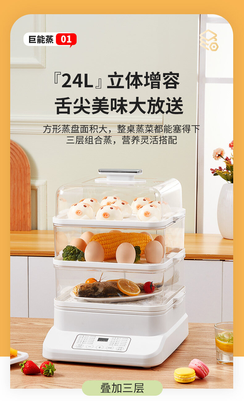 Электрическая пароварка, 2 корзины для приготовления пара, универсальная, 1000 Вт