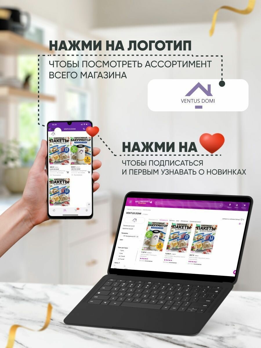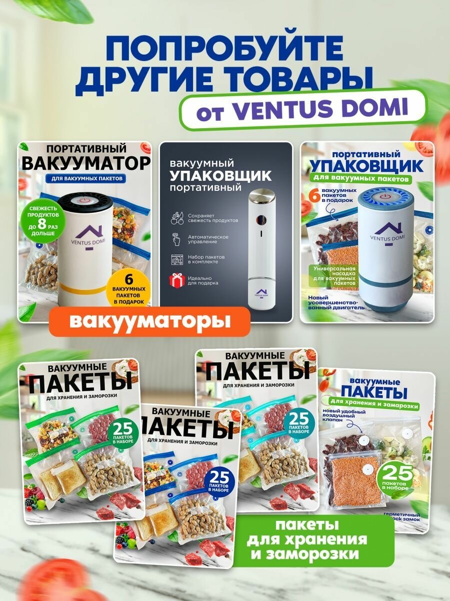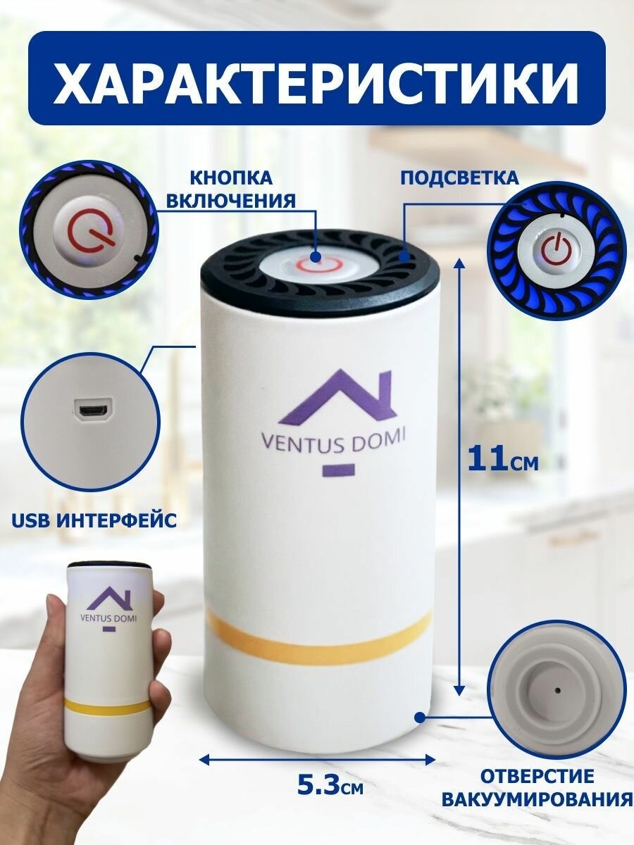 | Подробная комплектация | Портативный вакуумный упаковщик, 6 вакуумных пакетов, инструкция, зарядный кабель |