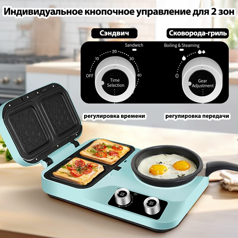 Многофункциональная машина для приготовления сэндвичей со сковородой, светло-зеленый. интересное: