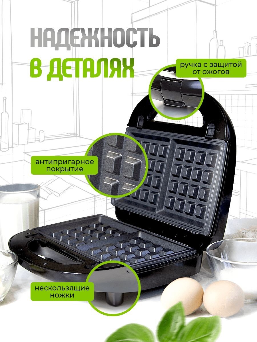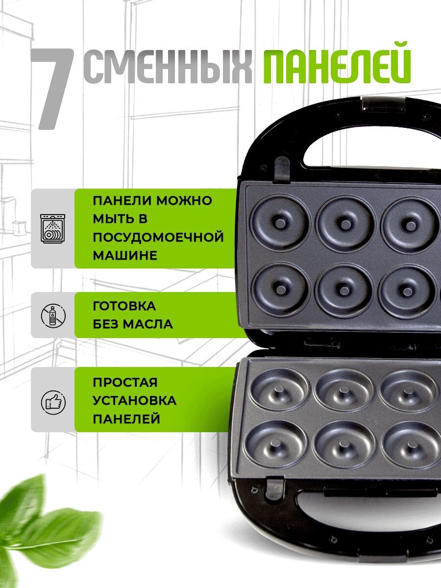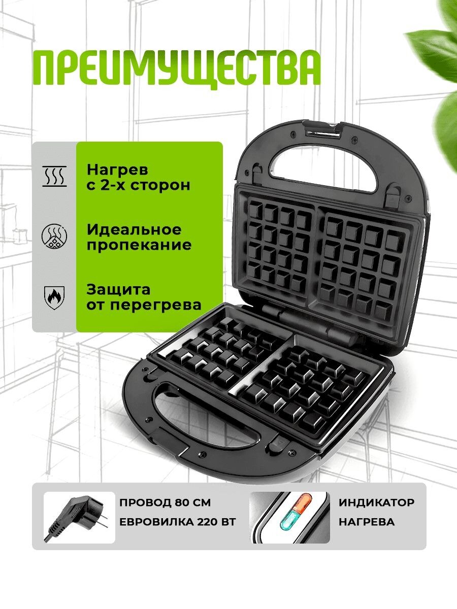 Мультипекарь для приготовления вафель 7 в 1, вафельница, сендвичница электрическая, орешница, гриль, индикатор нагрева, 750 Вт, черный интересное: