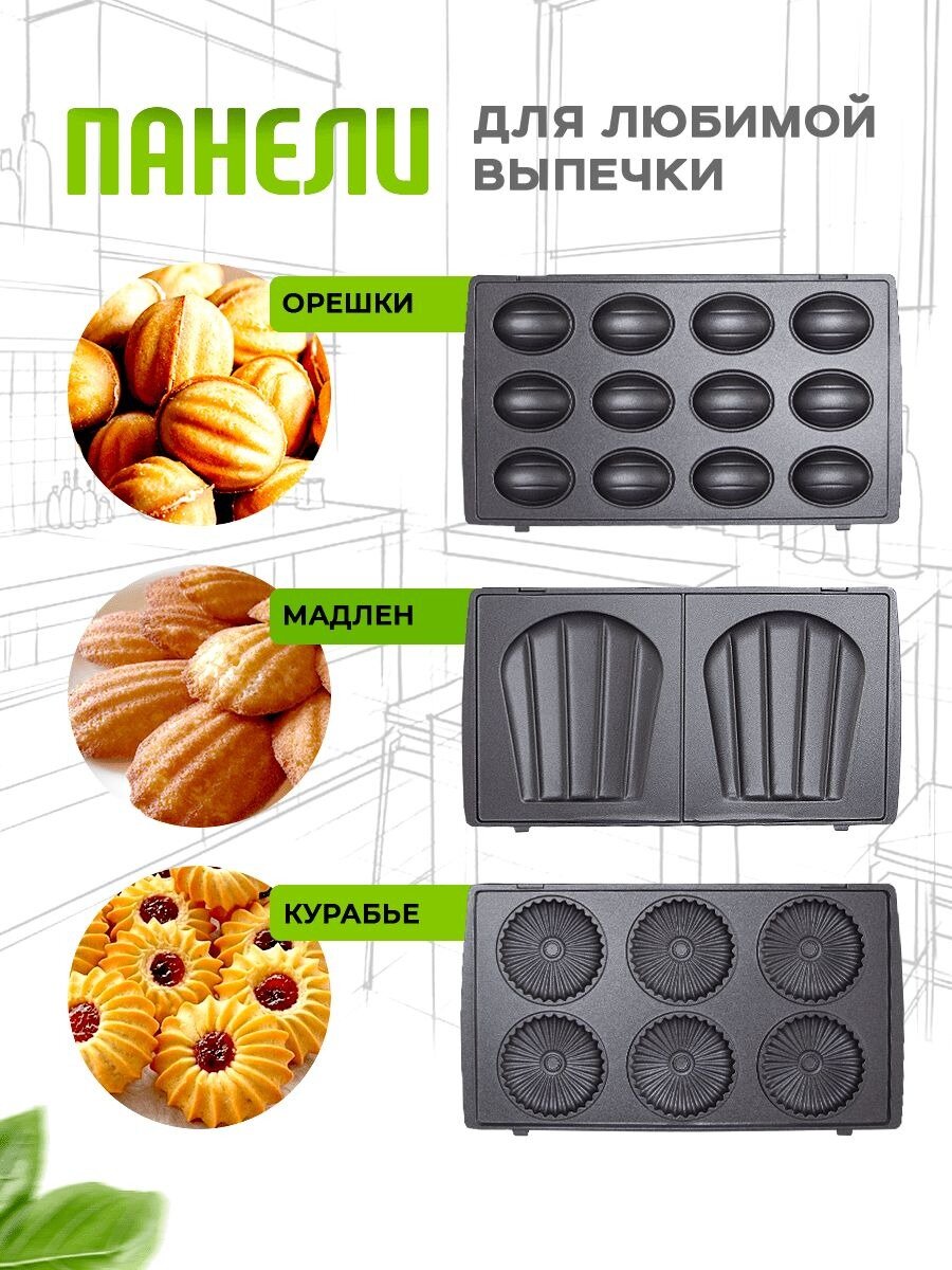 | Вид панели | вафли / выпечка и печенье / гриль / орешки / пончики / сэндвичи |