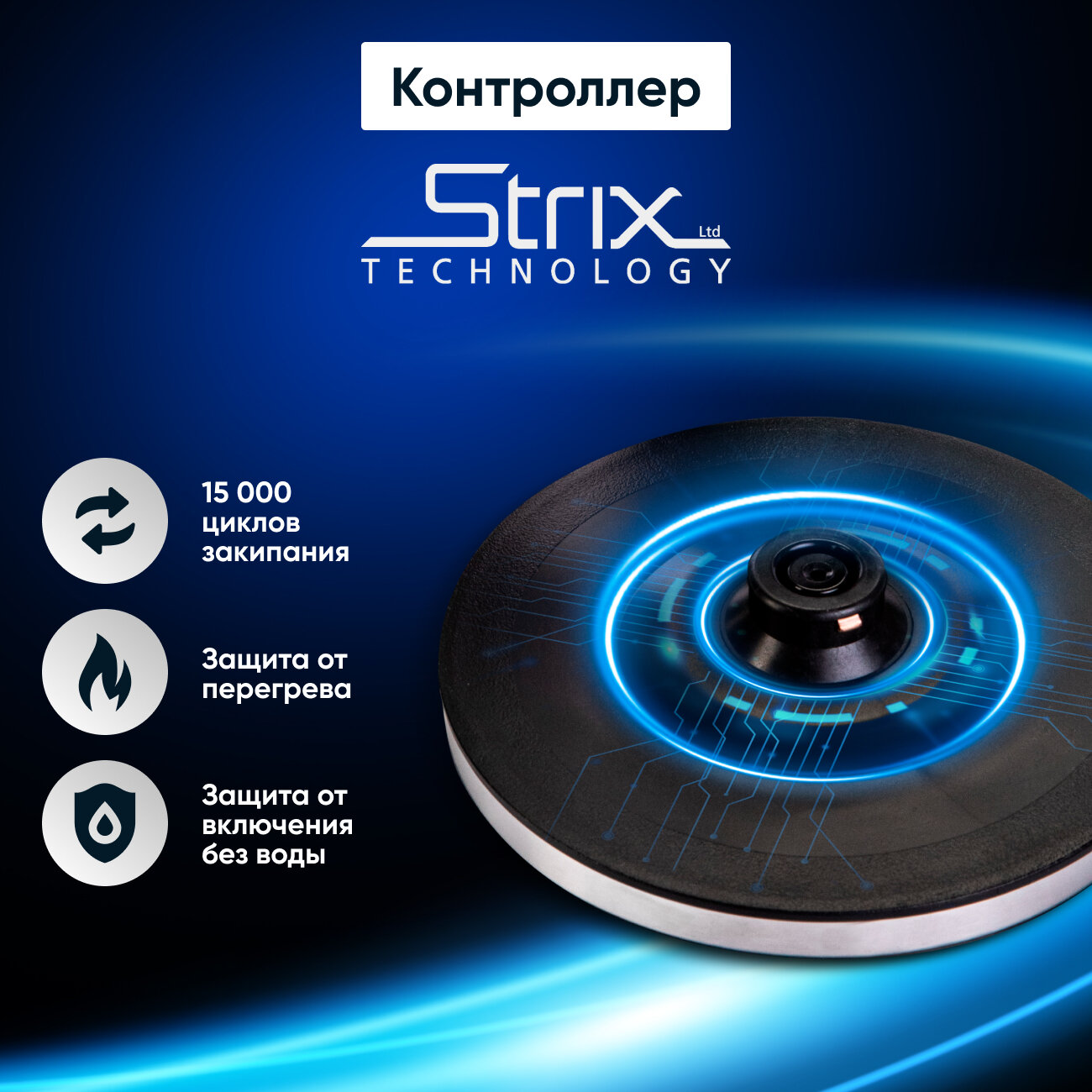 Чайник электрический Gressel GRK-1105 стеклянный с подсветкой, 1,7л, STRIX-контроллер интересное: