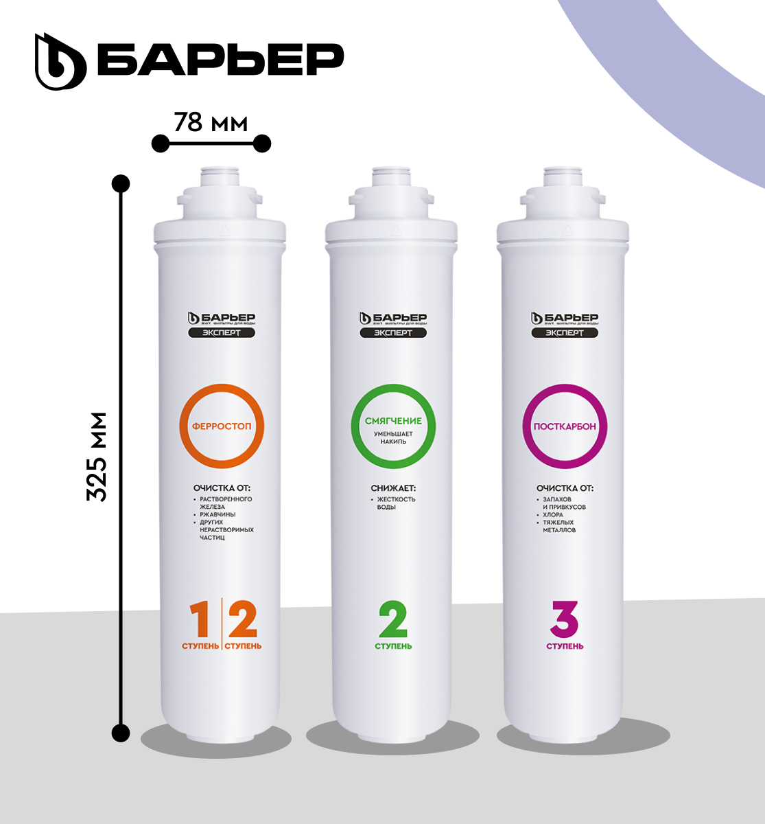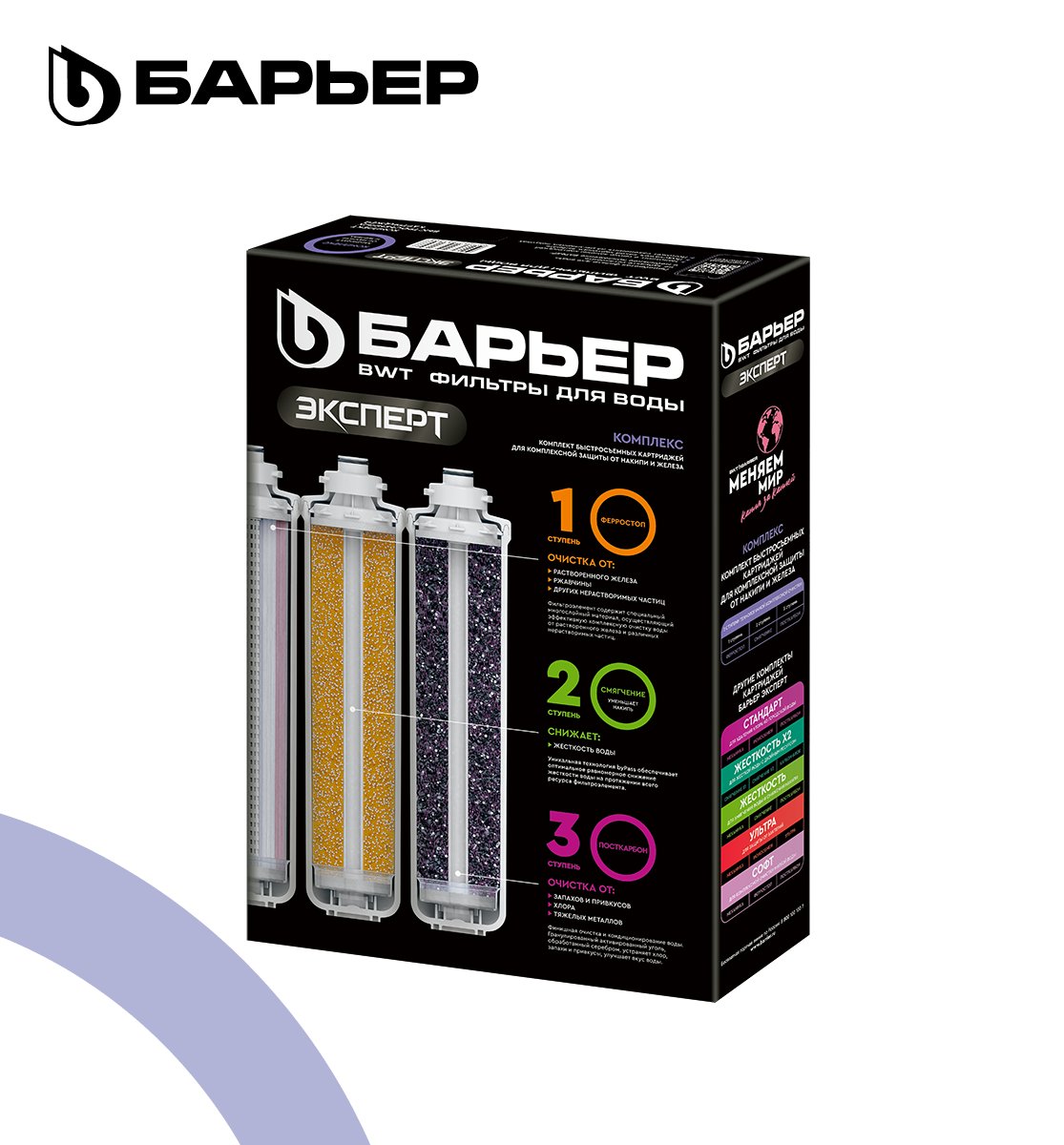 БАРЬЕР эксперт Комплекс, комплект картриджей для фильтра под мойку, защищает от накипи и железа, быстросъемные интересное: