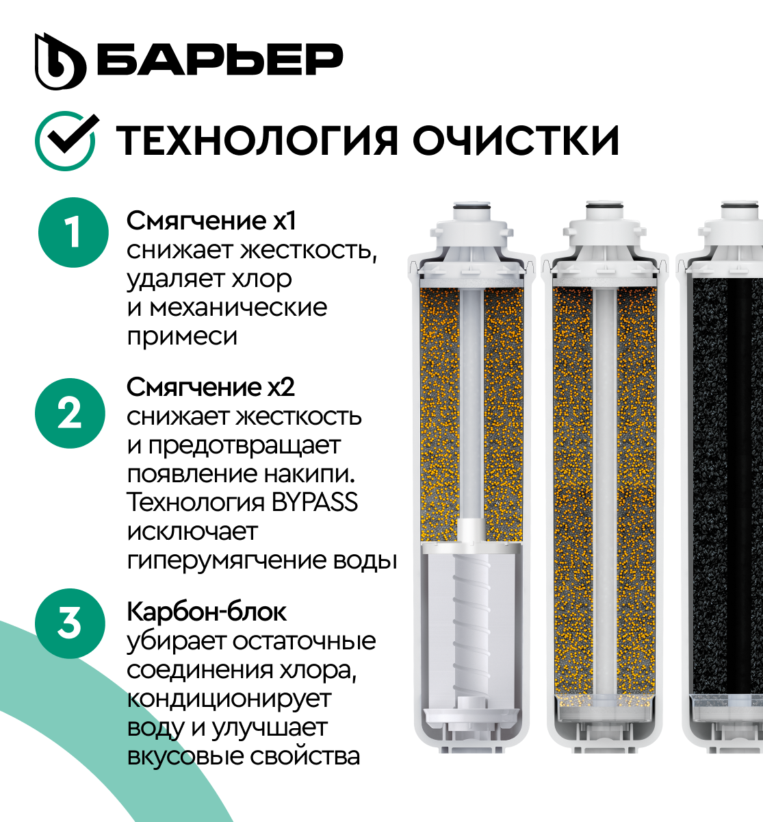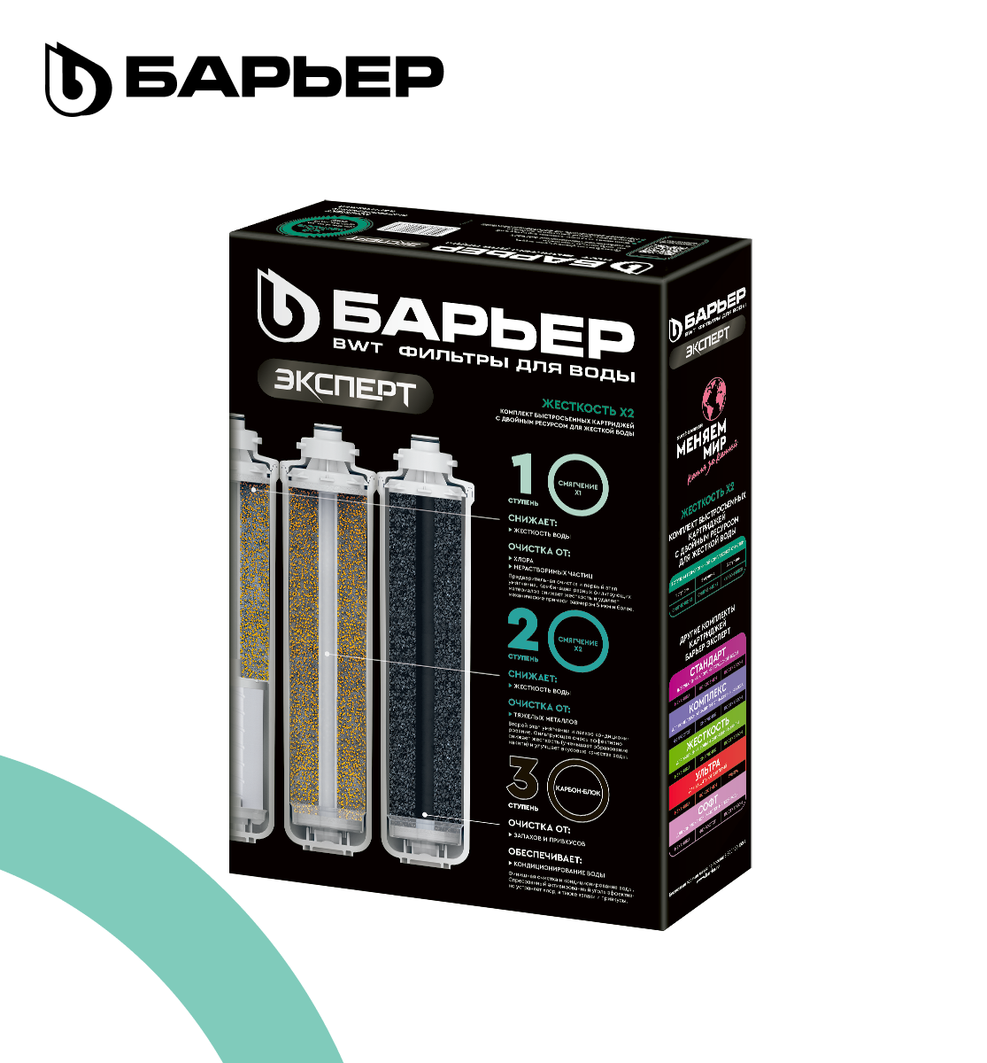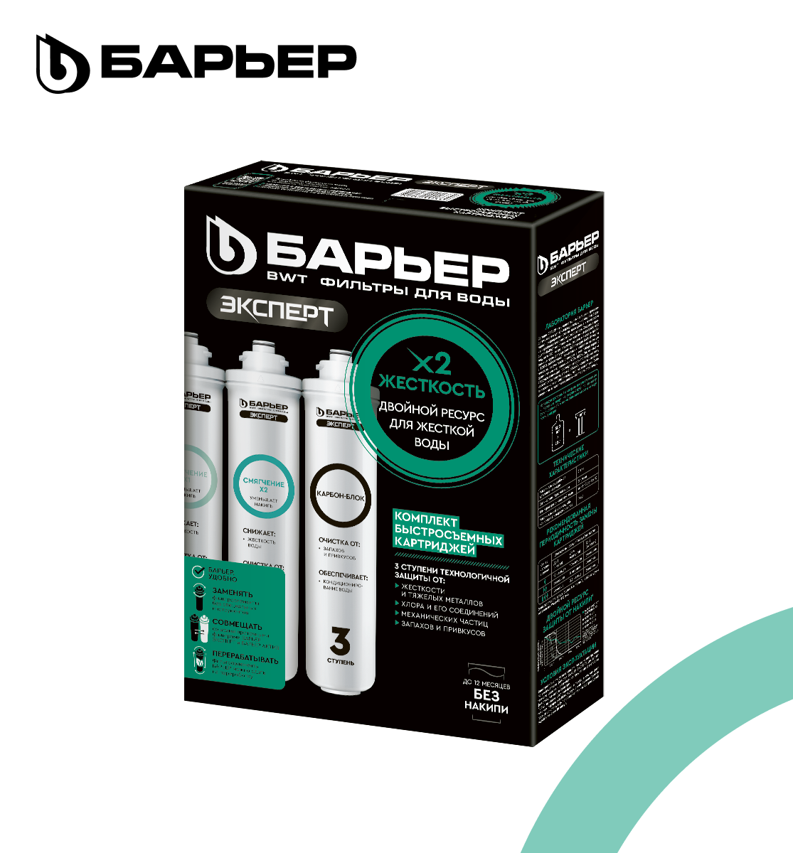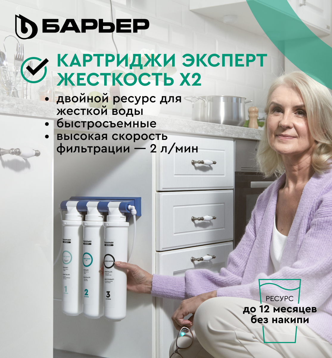 БАРЬЕР эксперт Жесткость х2, комплект картриджей для фильтра под мойку, двойная защита от накипи, трехступенчатый, быстросъемный интересное: