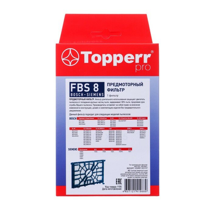 Предмоторный фильтр Topperr FBS 8 для пылесосов BOSCH интересное: