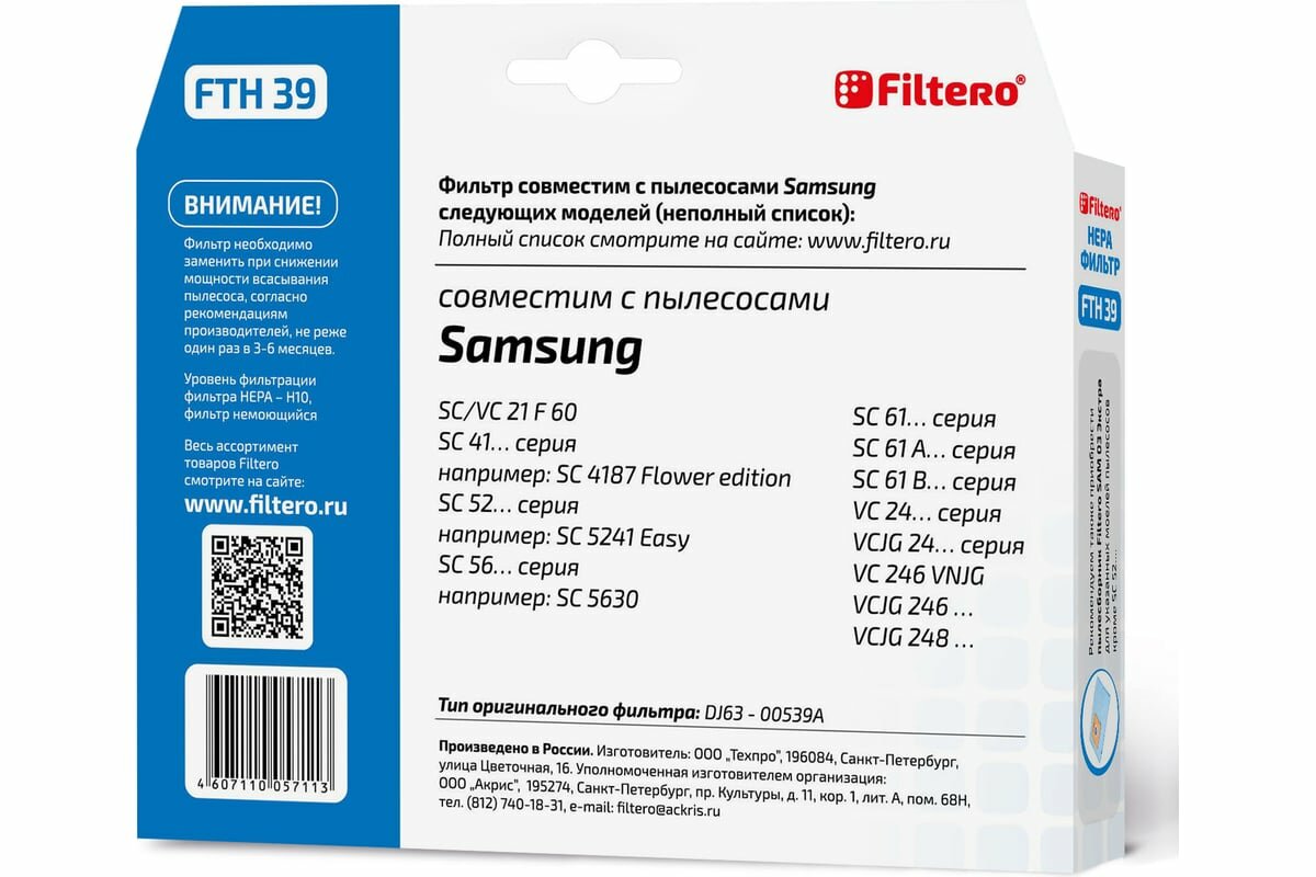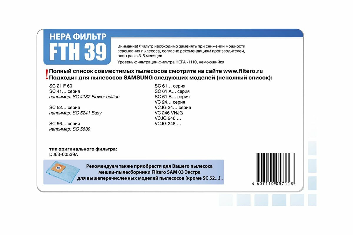 HEPA фильтр Filtero FTH 39 для пылесосов Samsung интересное:
