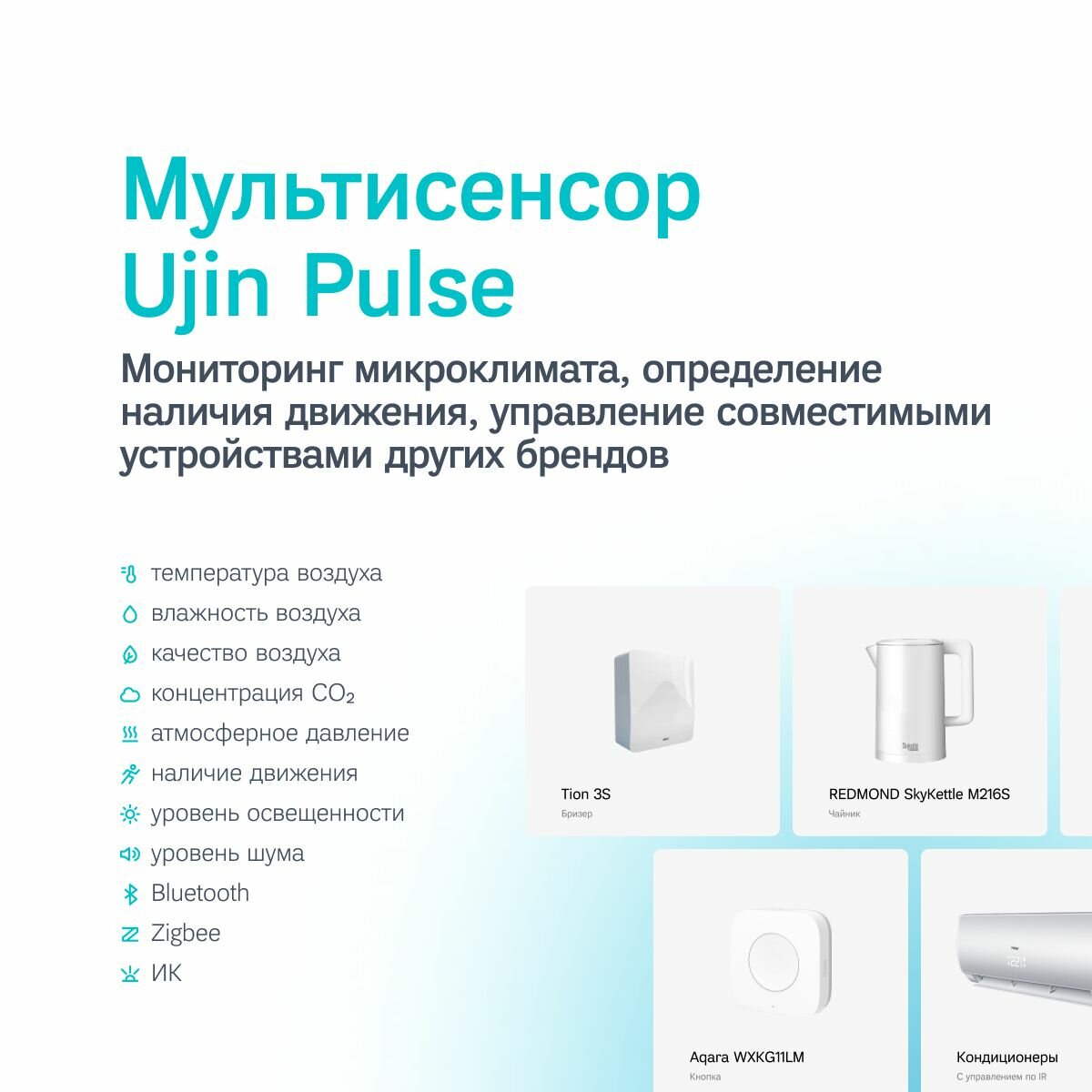 Мультисенсор UJIN Pulse M-10000-03 Max M2 ZigBee WiFi/BLE/IR/CO2, умный датчик 7 в 1 с голосовым управлением, совместим с Яндекс Алисой, умный дом интересное: