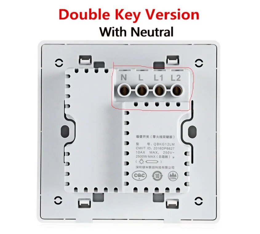 Умный выключатель Aqara D1 ZigBee, D1 No Neutral 2Key