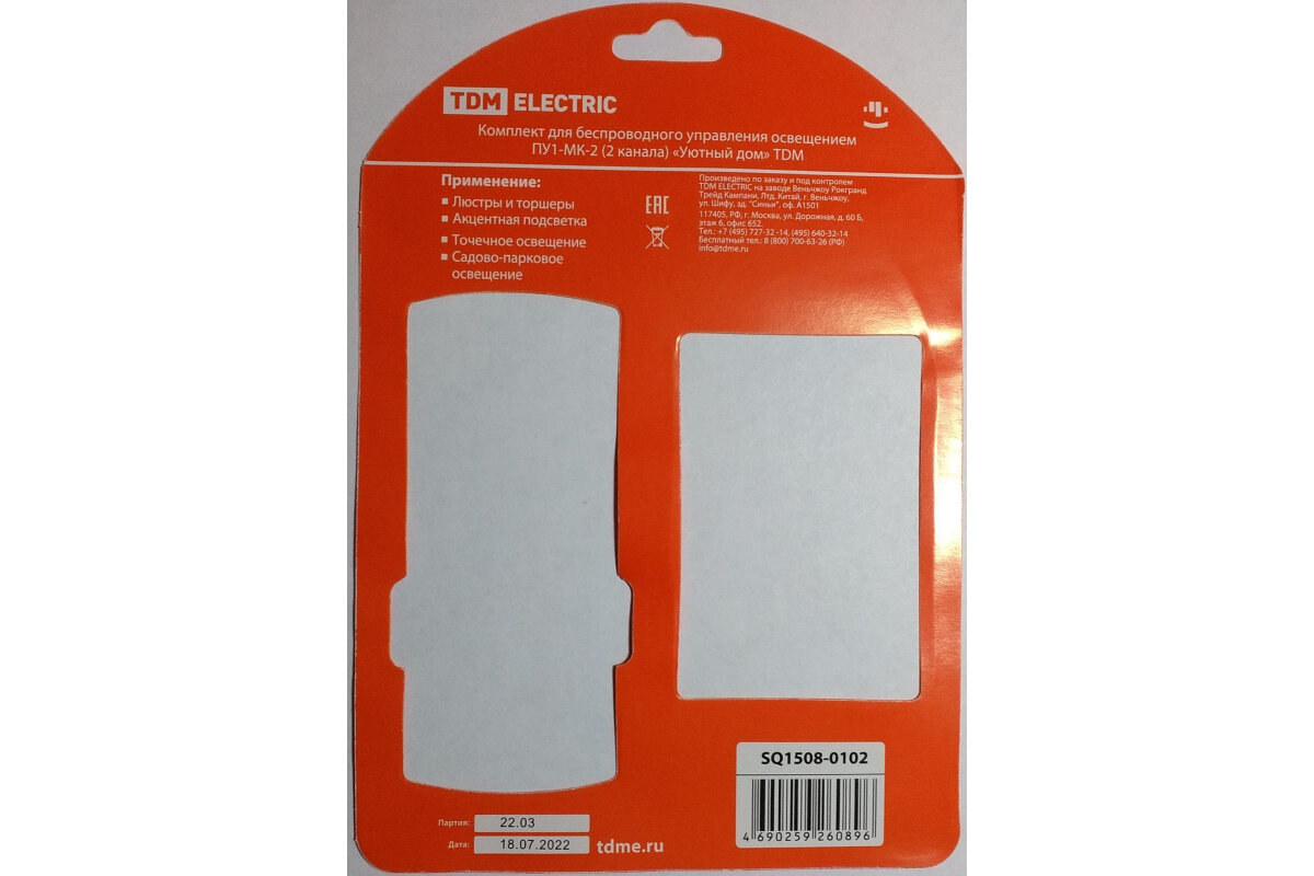 Комплект для беспроводного управления освещением TDM ПУ1-МK-2 2 канала 'Уютный дом' SQ1508-0102 интересное: