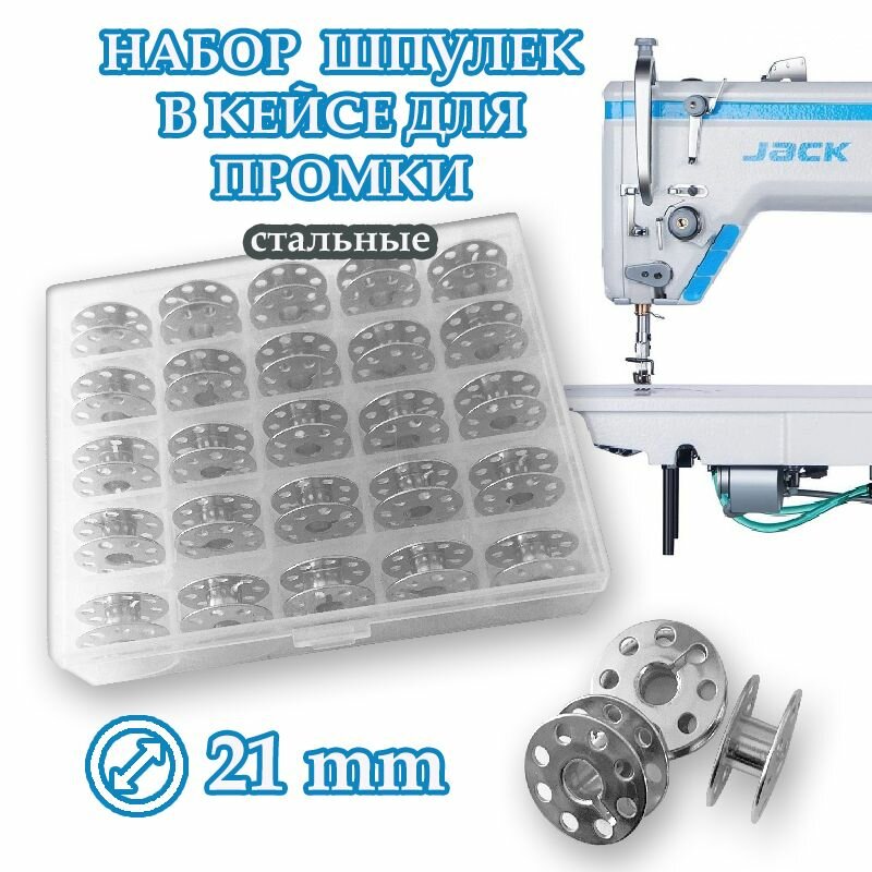 Набор стальных шпулек в кейсе (25 шт) для промышленных швейных машин JACK F4, JUKI 8500-8700, AURORA, веритас. интересное: