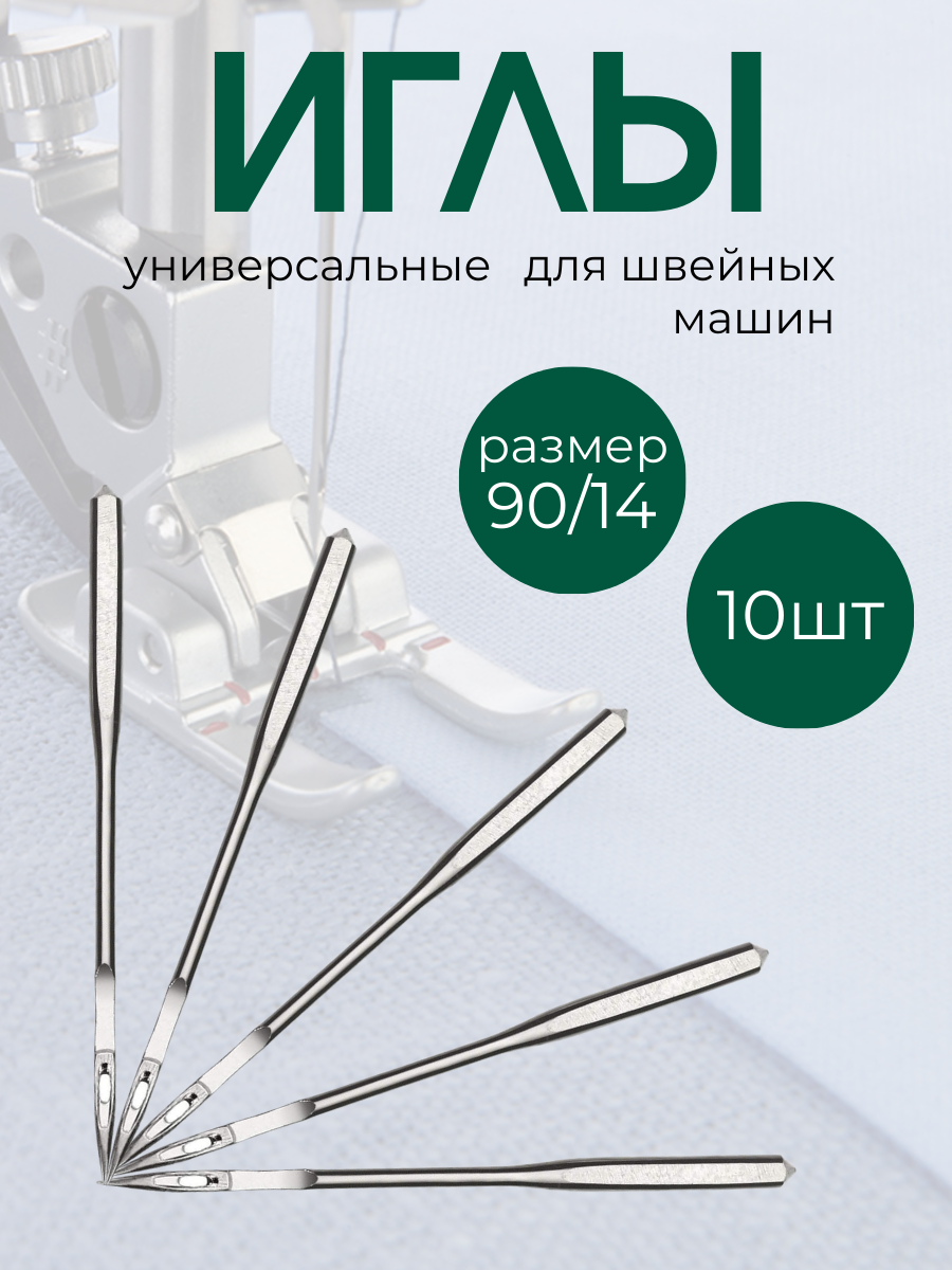 Иглы DALI для бытовых швейных машин №90, 10 штук, универсальные