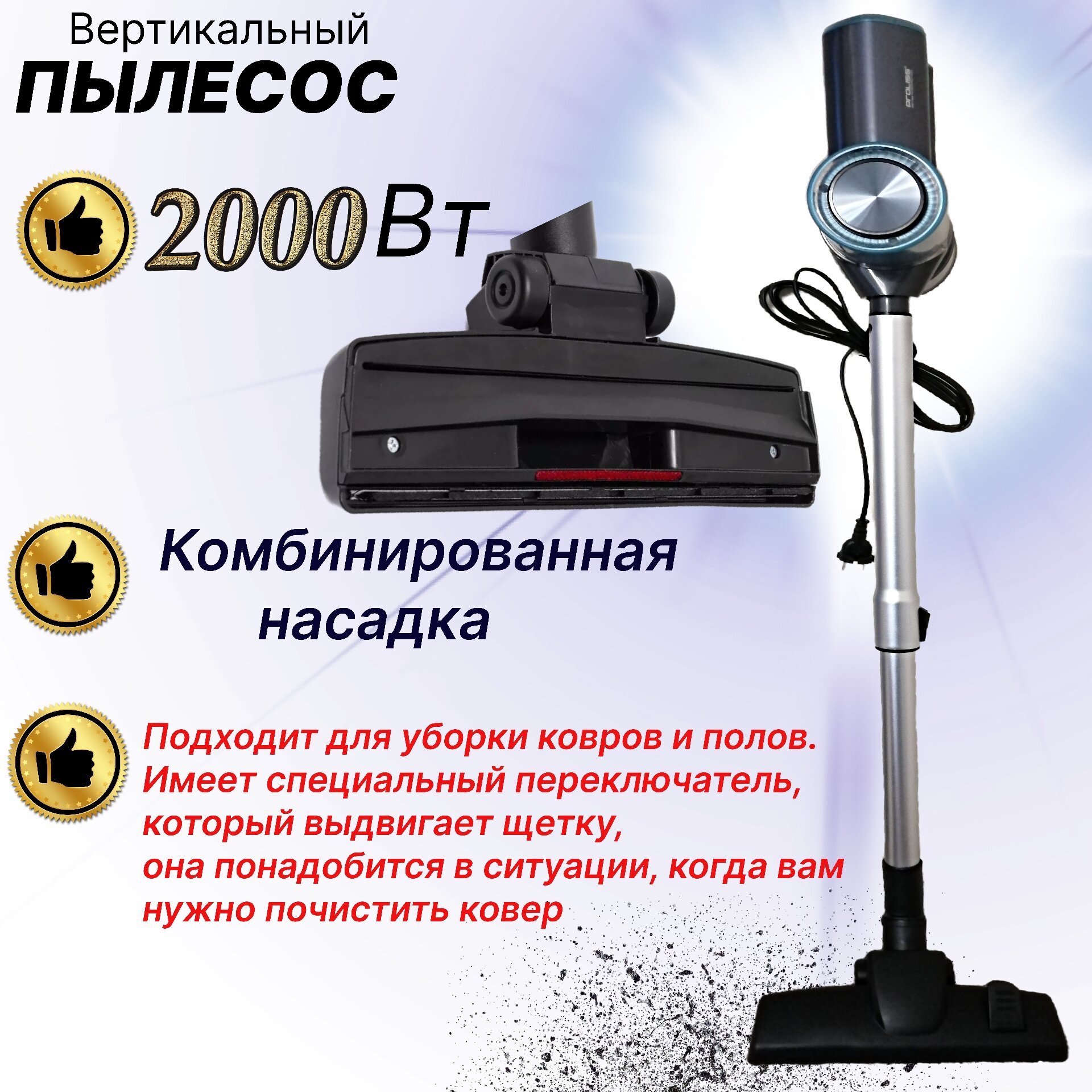 Электрический Пылесос циклонного типа мощность 2000Вт, с комплектом насадок, контейнер 1,2 литра, с креплением интересное: