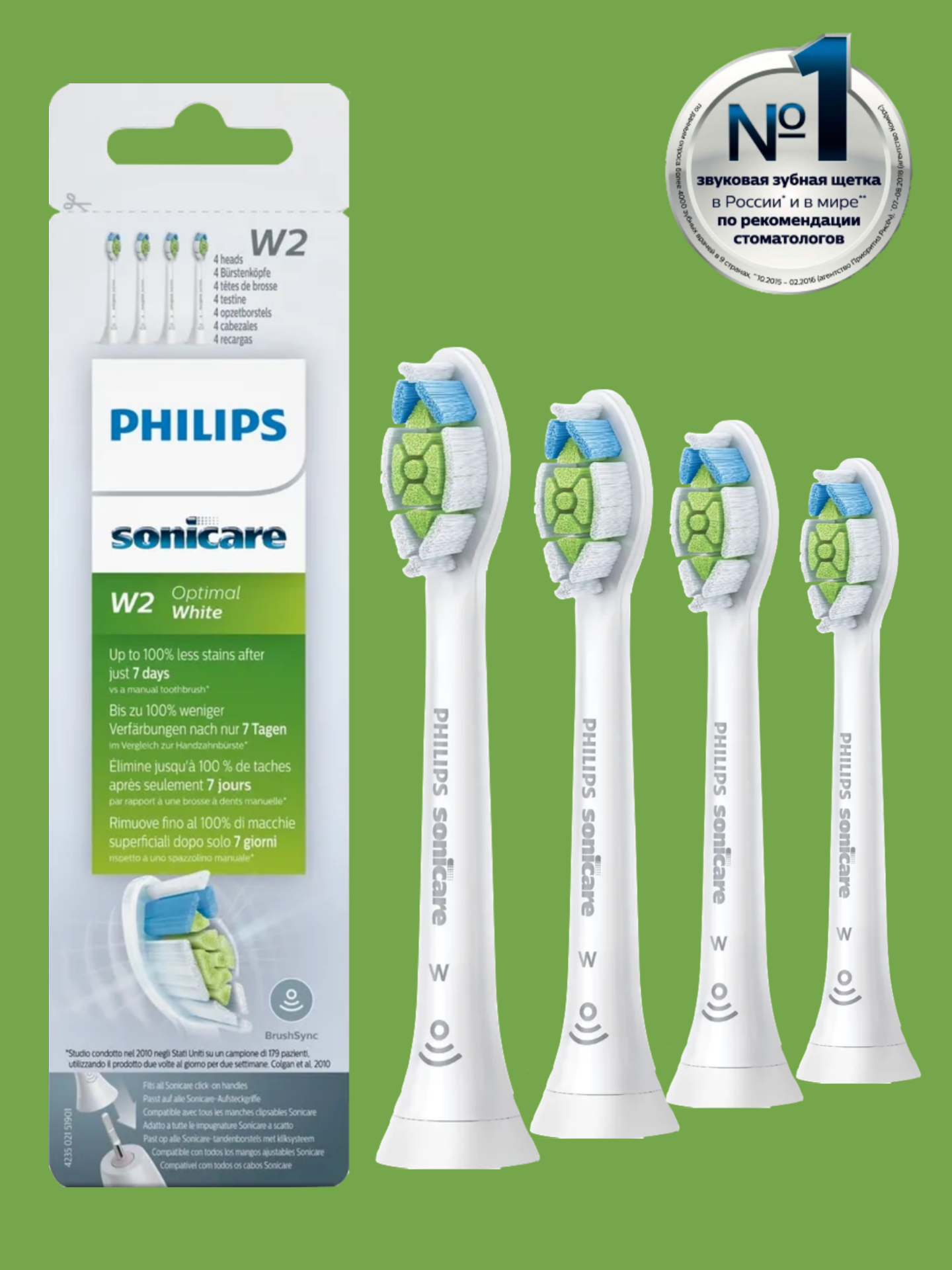Насадки для зубных щеток совместимы с Philips Sonicare W2 Optimal White, 4 шт интересное: