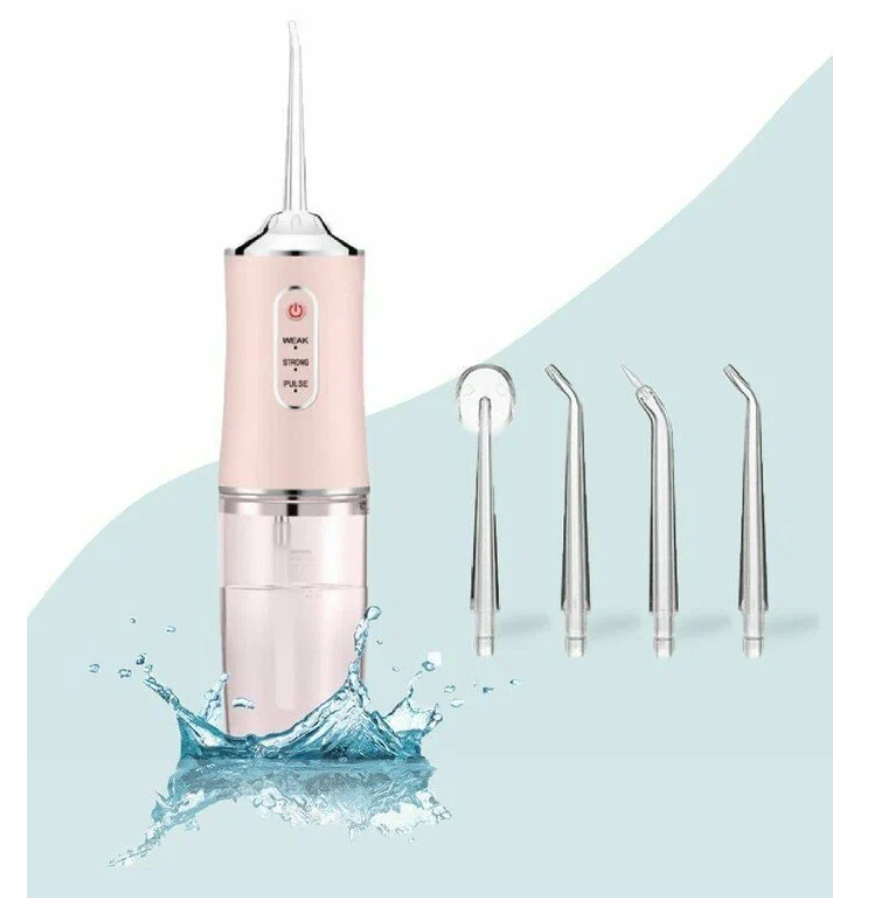 Купить Ирригатор портативный для полости рта / 4 насадки/ Розовый