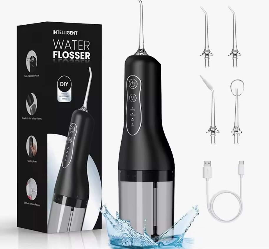 Ирригатор для зубов портативный Intelligent Water Flosser / черный / 4 режима / 4 насадки / со встроенным аккумулятором / компактный интересное: