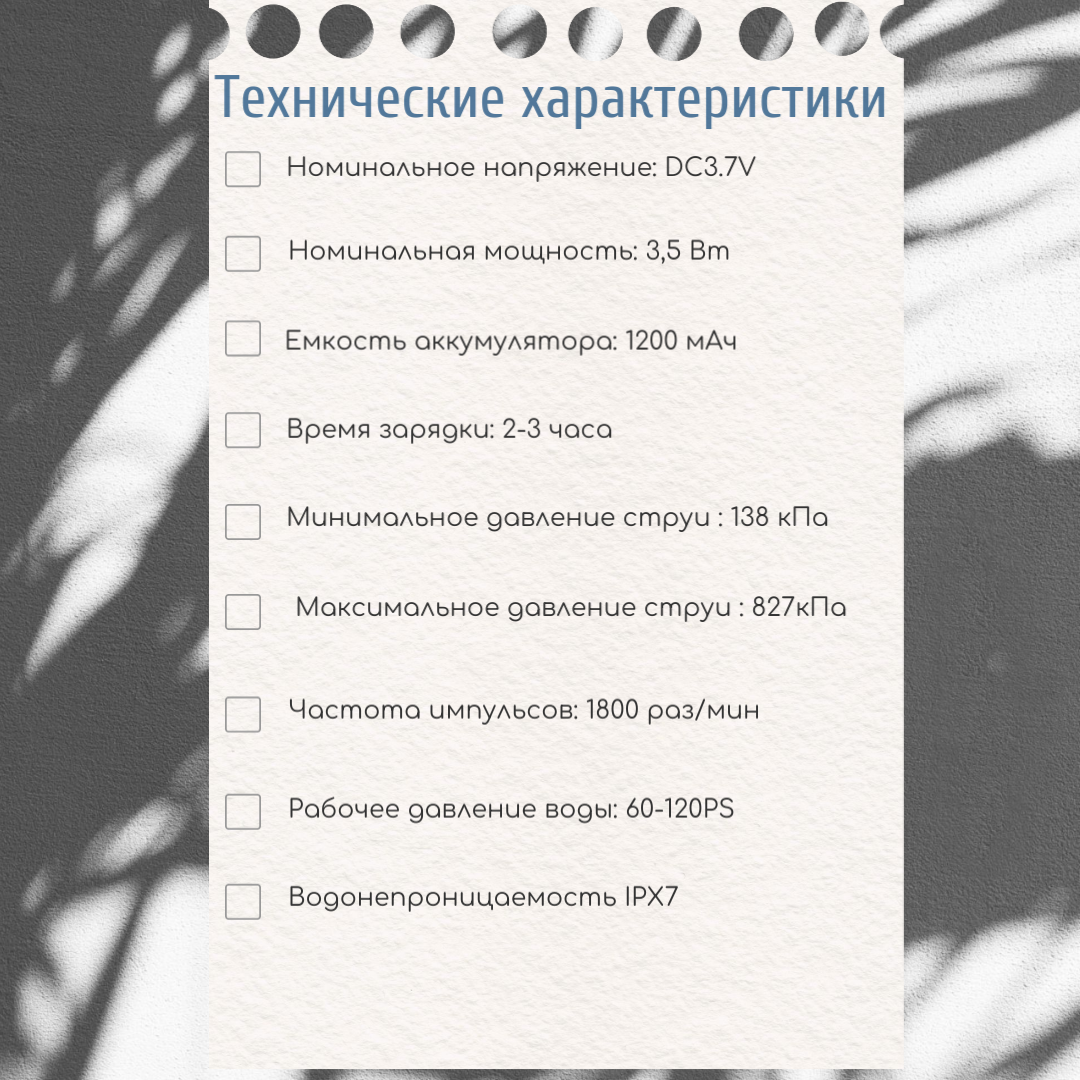| Подробная комплектация | Ирригатор ; 4 насадки ; USB кабель ; Инструкция на русском языке |