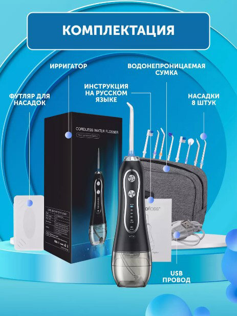 Ниже Вы можете прочитать отзывы на Ирригатор для полости рта портативный/для зубов, 8 сменных насадок, 5 режимов для чистки зубов и брекетов языка импульсивный ортодонтический/с чехлом, ознакомится с подробными характеристиками, посмотреть интересные обзоры и фотографии на Ирригатор для полости рта портативный/для зубов, 8 сменных насадок, 5 режимов для чистки зубов и брекетов языка импульсивный ортодонтический/с чехлом.