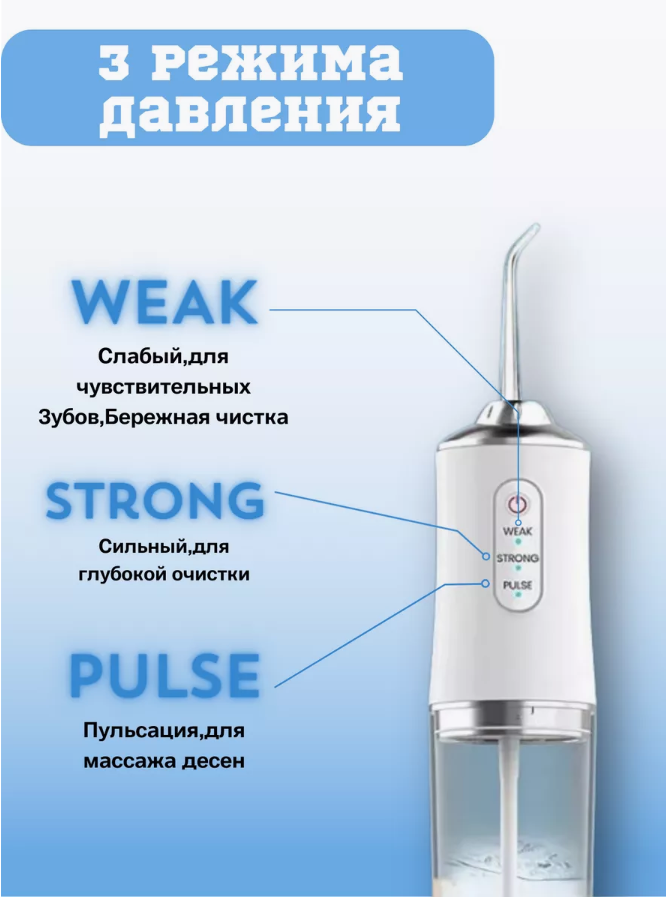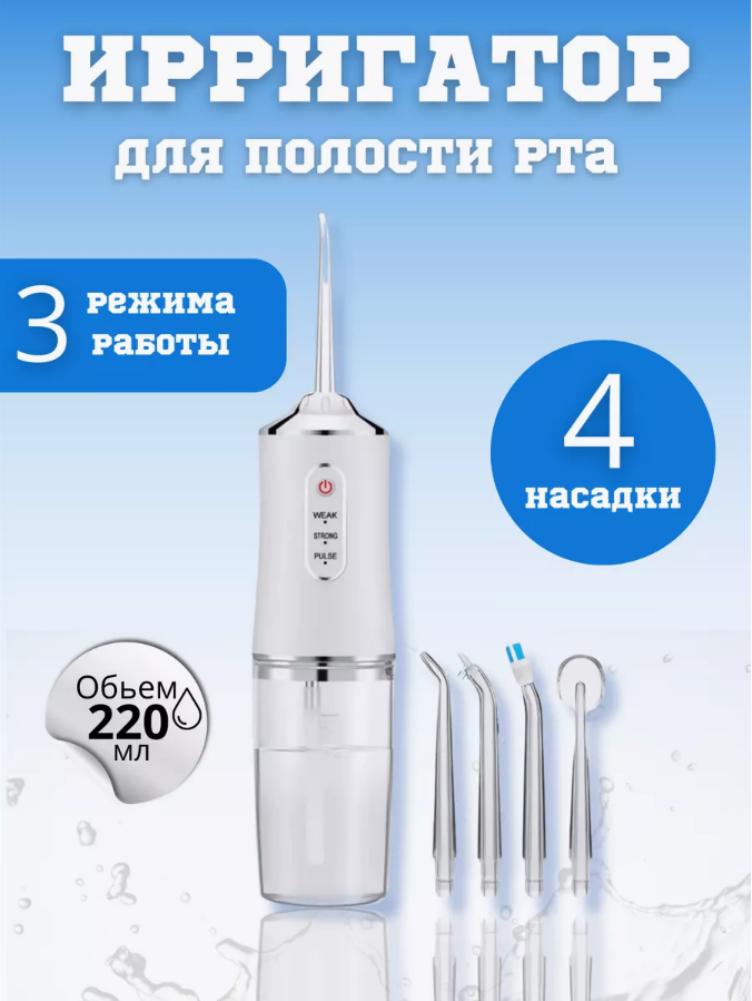 Ирригатор для полости рта десен / 4 насадки / 3 режима работы / Белый интересное: