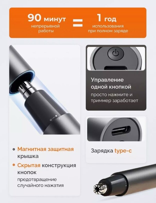 Xiaomi Триммер Mijia Electric Nose Hair Trimmer MJGHB1LF интересное: