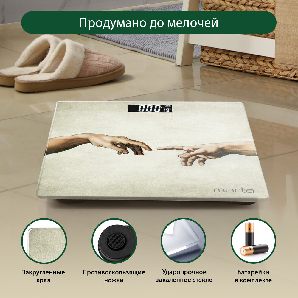 MARTA MT-1676 Сотворение Адама весы напольные сенсор, встроенный термометр интересное: