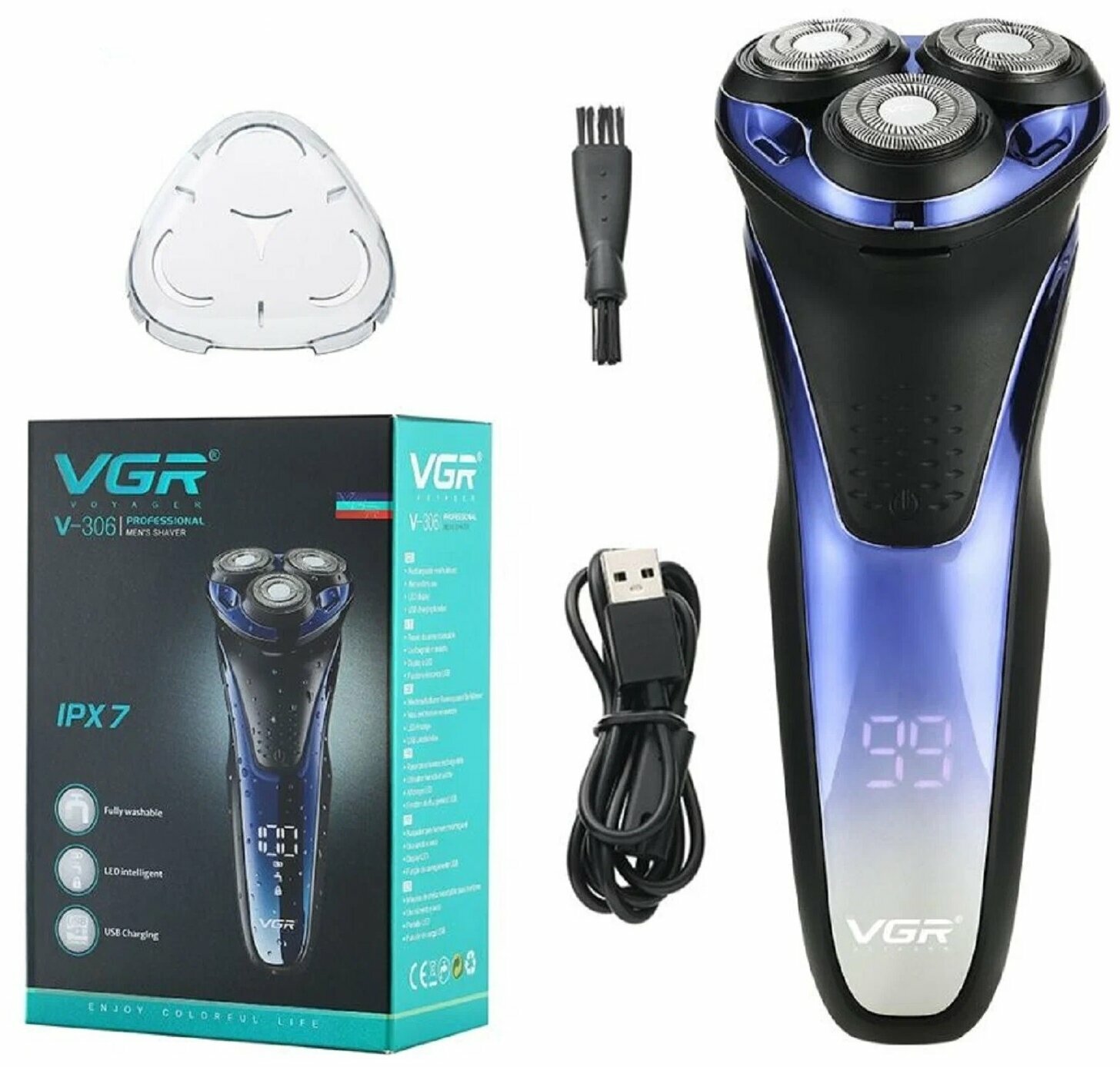 | Подробная комплектация | Электробритва VGR V-306; USB-кабель; Защитная крышка; Щеточка для очистки. |