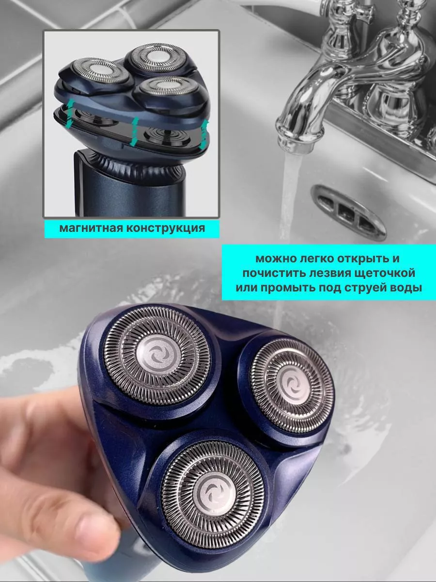 Электробритва мужская/ шейвер/ бритва для мужчин/электрическая с 3 плавающими головками для сухого и влажного бритья интересное: