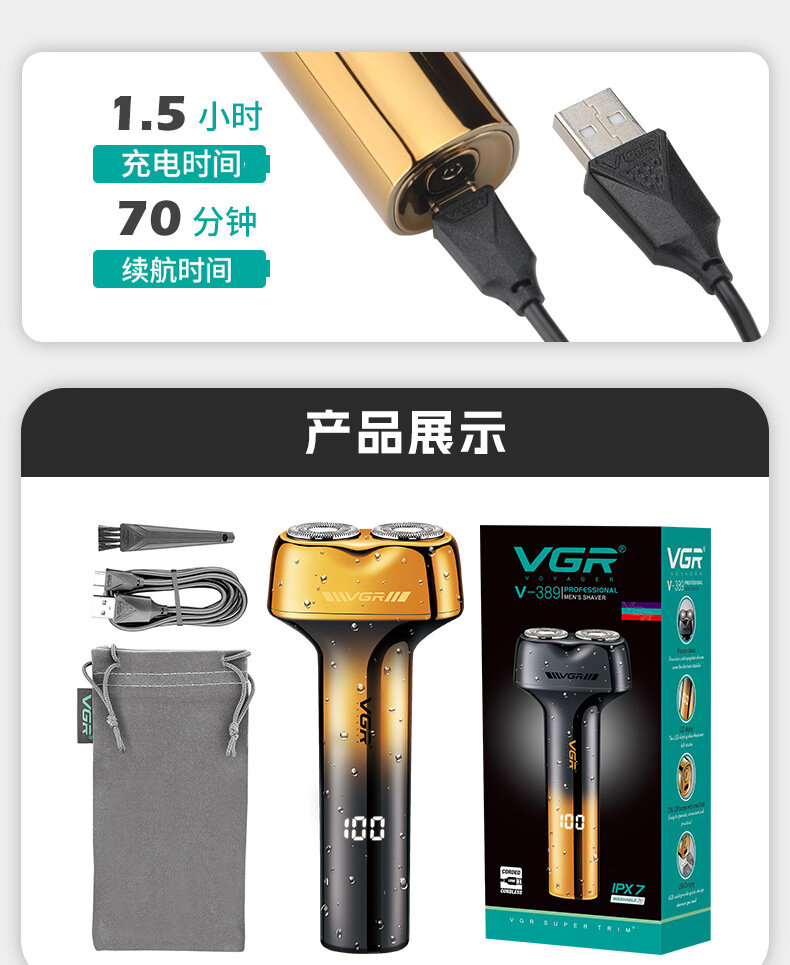 Купить Бритва cross-border V-389, с дисплеем, li-ion аккумулятор, 2 бреющих элемента