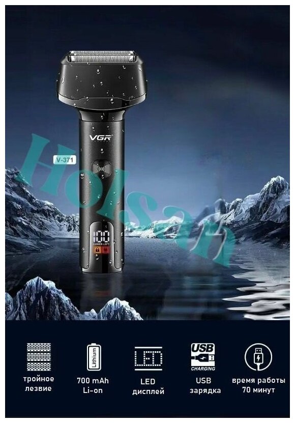 Бритва cross-border V-389, с дисплеем, li-ion аккумулятор, 2 бреющих элемента