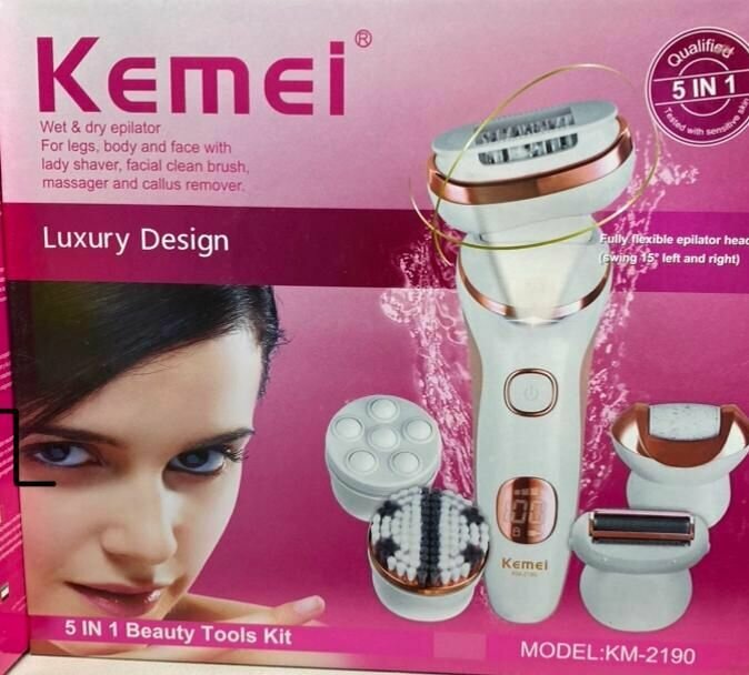 Kemei Эпилятор KM-2190, 5 в 1, набор для ухода за лицом и телом интересное: