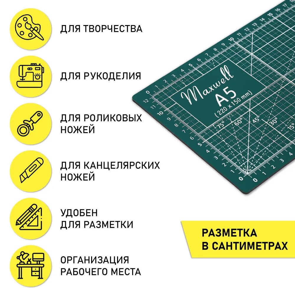 СохранитьКоврик раскройный для пэчворка Maxwell premium, 3мм 22*15см (A5), двухсторонний трёхслойный интересное: