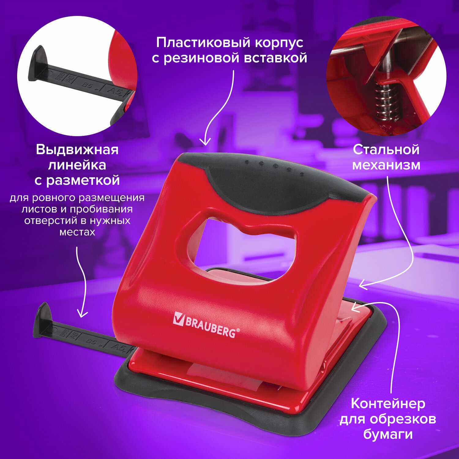 Дырокол BRAUBERG "JET PRO", до 30 листов, красно-черный, 228601, 1шт в компл. интересное: