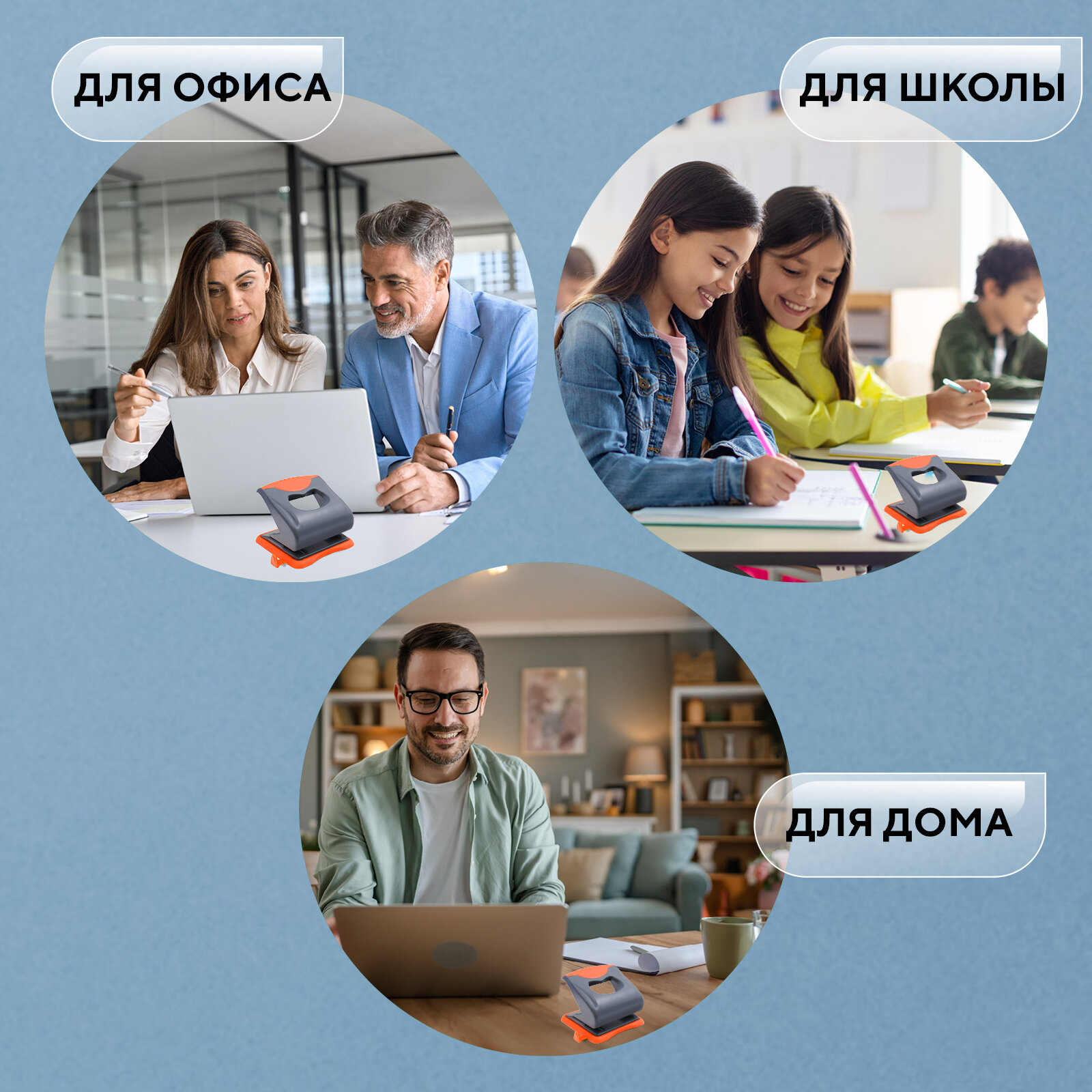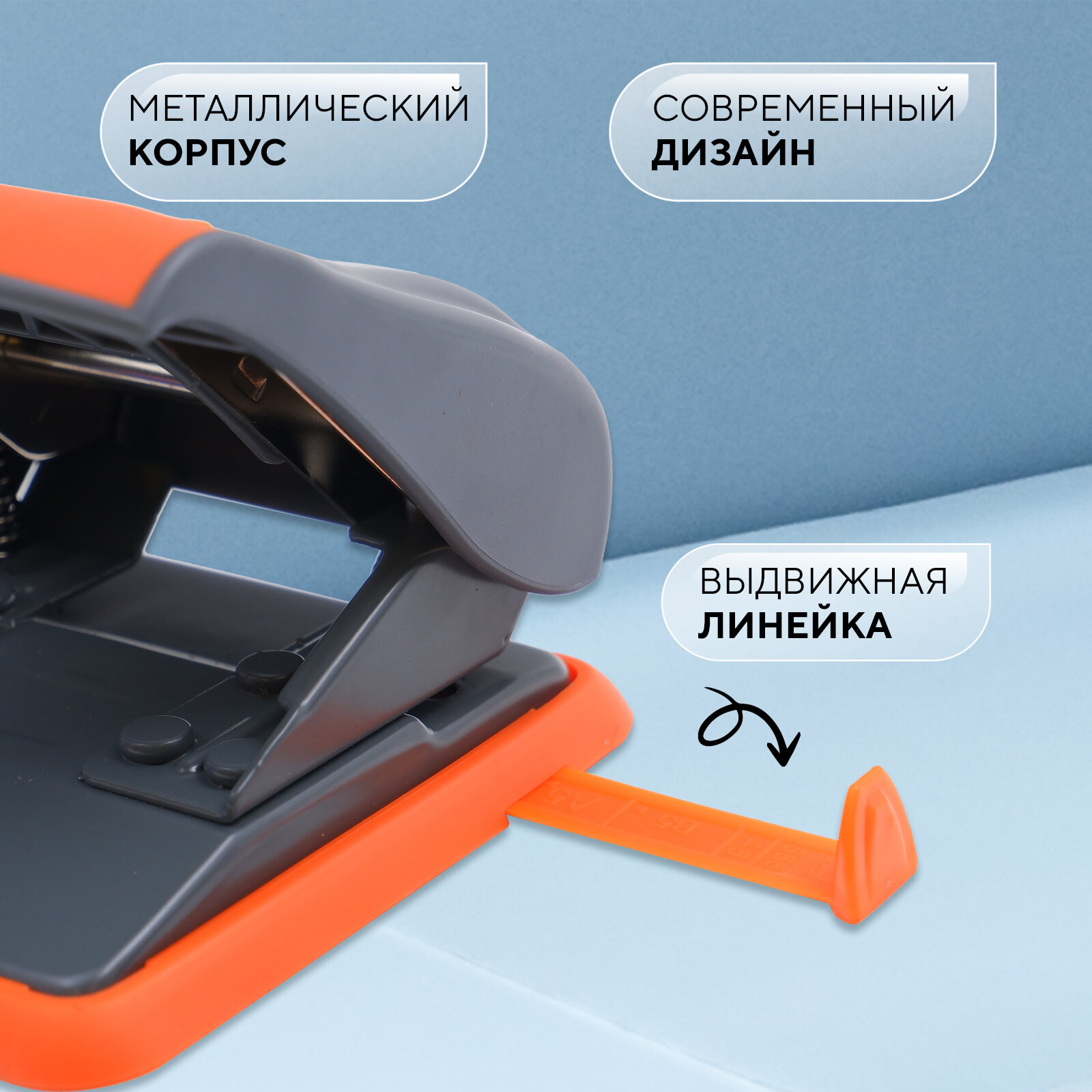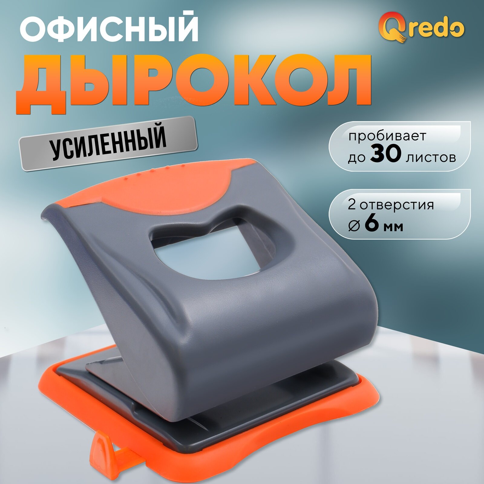 Дырокол 30 л. QREDO металлический, с выдвижной линейкой и резиновой накладкой, серо-оранжевый интересное: