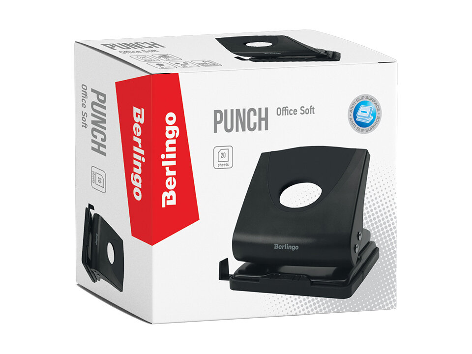 Купить Дырокол Berlingo "Office Soft", 20 листов, пластиковый, черный, с линейкой (DDp_20161)