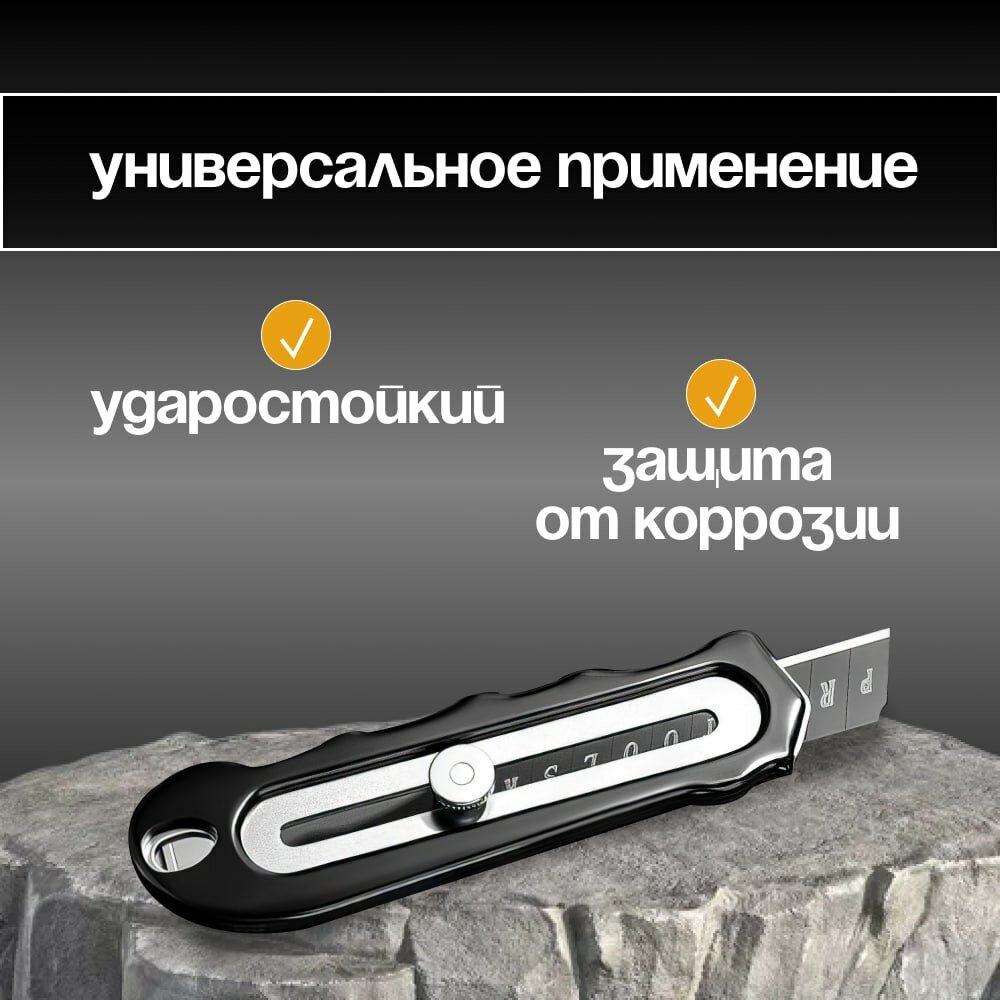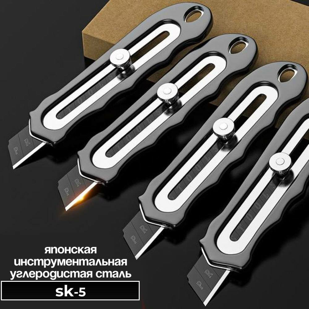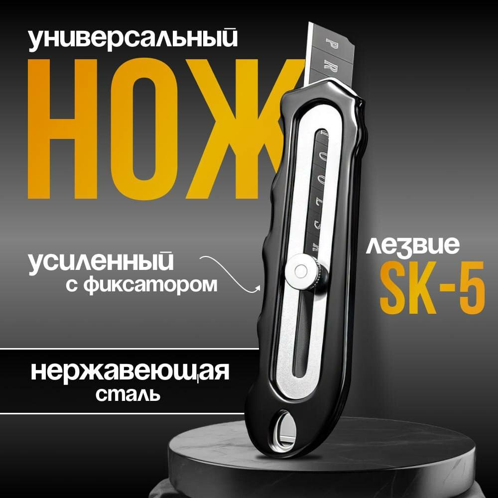 Нож строительный технический универсальный / канцелярский / усиленный с фиксатором / лезвие SK5 18мм интересное: